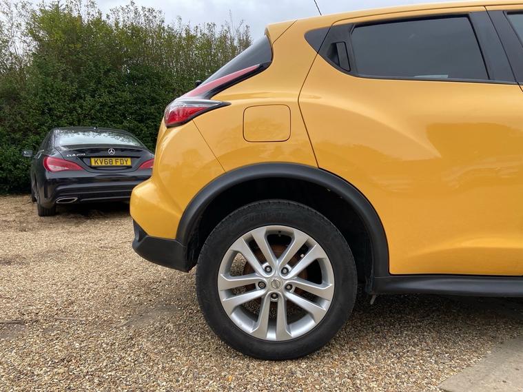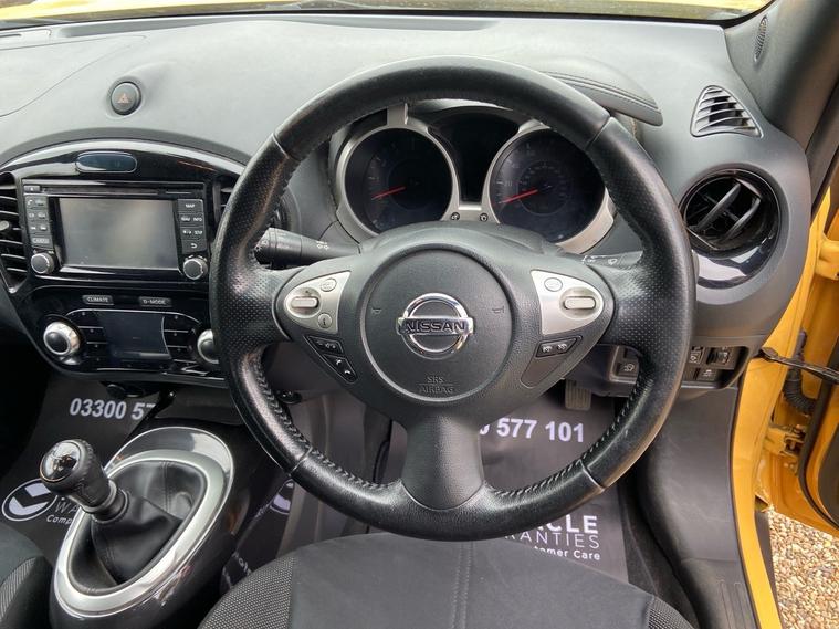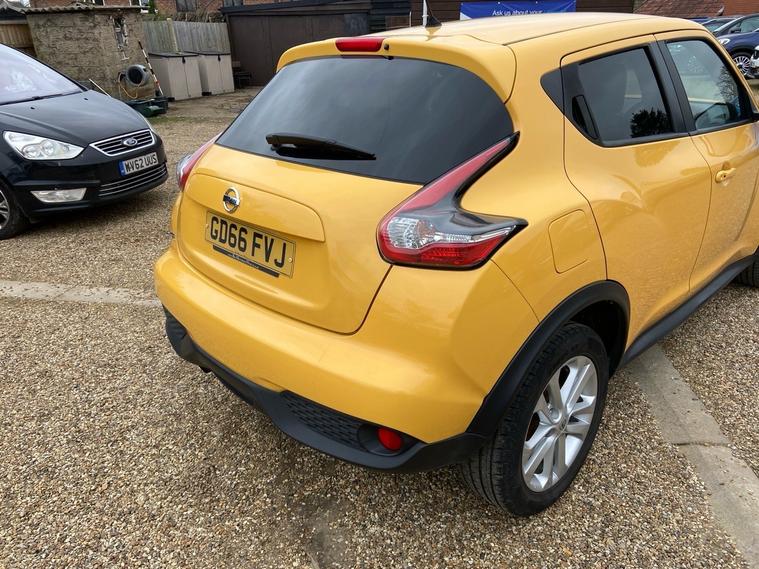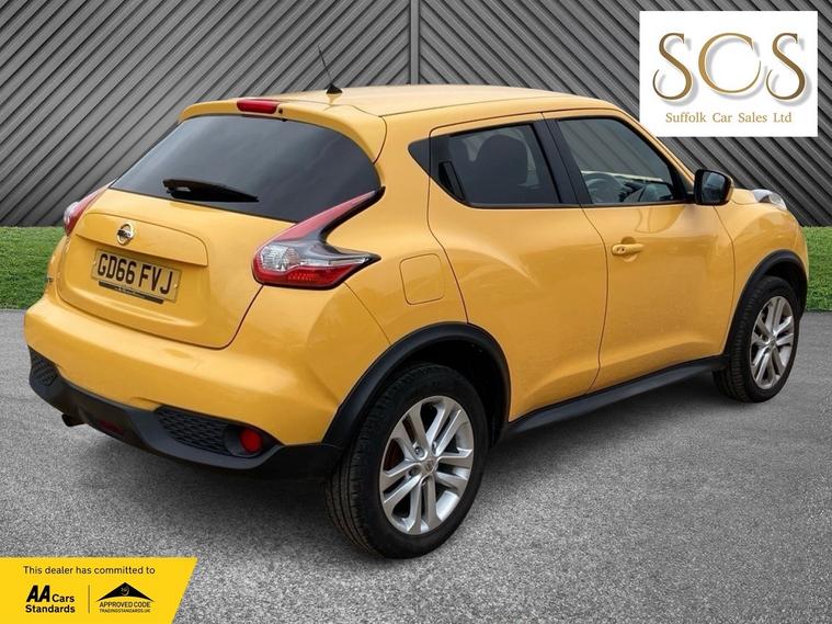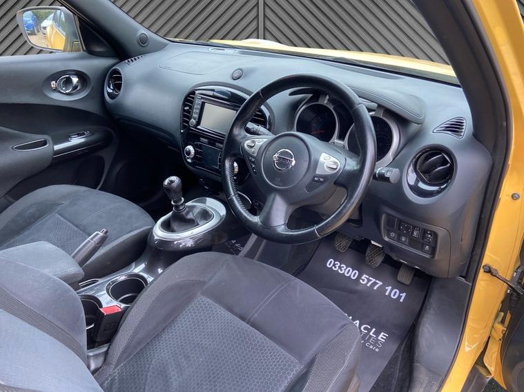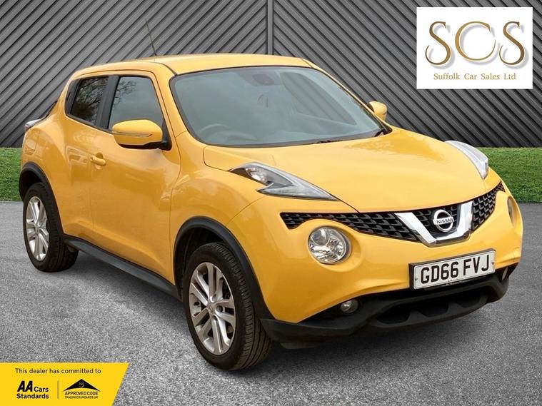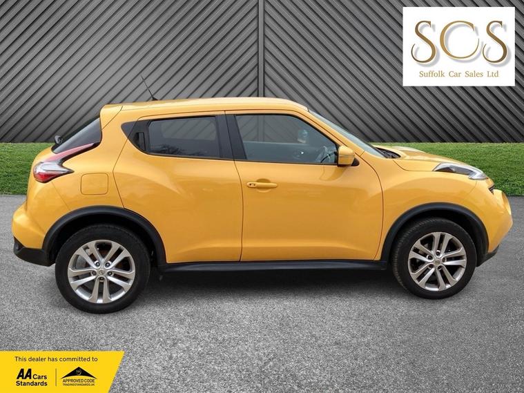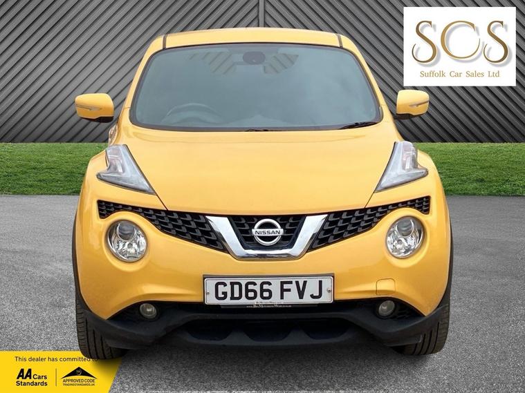 NISSAN JUKE 1.2 DIG-T N-Connecta 2016 (66) 68, 128 Miles 2 Owners Petrol Manual Finished in Yellow, Great looking Nissan Juke N-Connecta finished in striking Yellow with contrasting interior. This well-maintained example has covered just 68, 128 miles and has had only 2 owners from new. The Juke is known for its distinctive styling, elevated driving position and great specification, making it an ideal choice for both town and motorway driving. The 1.2 DIG-T turbo petrol engine offers an excellent balance of performance and economy, paired with a smooth manual gearbox for an engaging drive. Key Features Include:, Satellite Navigation, Reverse Camera, NissanConnect Touchscreen System, Bluetooth Connectivity, DAB Digital Radio, Climate Control, Cruise Control with Speed Limiter, Keyless Start, Alloy Wheels, Electric Folding Mirrors, USB / AUX Connectivity, Multifunction Steering Wheel, The vehicle drives very well and is in good condition for its age and mileage. 2 Owners from New, 68, 128 Miles, HPI Clear, Part Exchange Welcome, Finance Available (Subject to Status), All vehicles are pre-delivery inspected and supplied with a warranty for peace of mind. Suffolk Car Sales Ltd Great Waldingfield, Sudbury, Suffolk (CO10), Call us today to arrange a viewing or test drive.