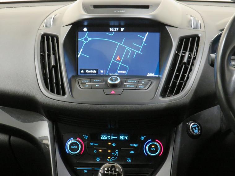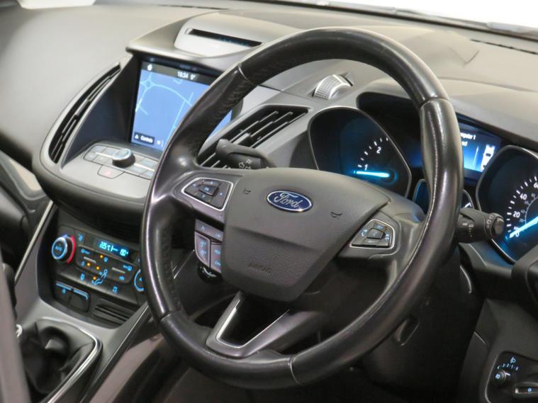 This 2017 Ford Kuga TDCi Titanium boasts a clear vehicle history, offering you peace of mind. This stylish SUV features a robust 2.0L Diesel engine, meeting Euro 6 emissions standards. Inside, youll find the advanced SYNC 3 system with an 8in colour touchscreen, complete with Bluetooth, voice control, and USB connectivity for seamless integration of your devices. Automatic halogen headlights with LED daytime running lights ensure youre always visible, while keyless entry makes accessing your vehicle effortless. For added comfort, the DEATC dual zone electronic automatic temperature control allows you to set individual climate preferences. The Ford Kuga TDCi Titanium stands out with its impressive fuel economy, achieving up to 60 mpg, which indicates it is more economical than many similar vehicles. Its low CO2 emissions also highlight its environmental consideration compared to other cars. Furthermore, its low insurance group rating suggests that running costs will be more affordable. Rear parking sensors, including parking assistance, make manoeuvring in tight spaces simpler.