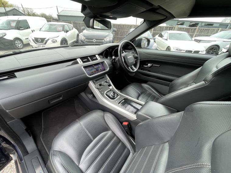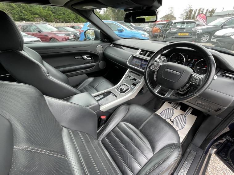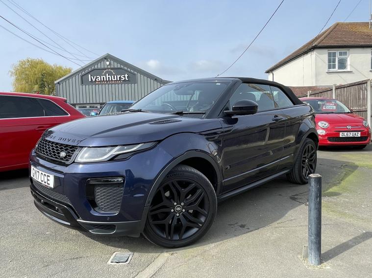 Essex Car Fleet are delighted to present this 2017 17 Land Rover Range Rover Evoque Convertible 2.0 TD4 HSE Dynamic, finished in stunning Loire Blue Metallic with just 45, 800 miles from new. This rare and highly desirable Evoque Convertible combines the iconic Range Rover design with the enjoyment of open-top motoring. Powered by the refined and efficient 2.0 TD4 engine and equipped with Land Rovers renowned four-wheel drive system, it delivers both comfort and capability in equal measure. This HSE Dynamic model looks superb in Loire Blue Metallic complemented by 20in 5 Split Spoke Style 504 alloy wheels in Sparkle Silver along with distinctive Narvik Black exterior styling including the grille, bonnet louvres, fender vents, mirror caps and tailgate finisher. The interior offers a luxurious and well-appointed cabin featuring perforated Oxford leather upholstery with 12-way electric memory seats and heated front seats, automatic climate control with air filtration and rear vents, carpet mats with edging and configurable interior mood lighting. Technology is provided by the impressive 10.2in high resolution Touch Pro infotainment system with navigation, DAB digital radio, Bluetooth telephone connectivity with streamed audio, CD/DVD player, USB connectivity and the InControl Connect Pro Pack including InControl Apps, InControl Pro Services, InControl Protect, InControl Remote Premium and InControl Secure during the warranty period. Driver comfort and convenience are further enhanced by features such as automatic headlights with high beam assist, rain sensing wipers, heated windscreen and heated washer jets, auto-dimming interior mirror, push button start, Range Rover smart key controls and electrically adjustable, heated and power-folding door mirrors with puddle lamps and memory function that automatically dip in reverse. Safety and driver assistance technologies include front and rear parking aid with rear view camera, lane departure warning with autonomous emergency braking, dynamic stability control, traction control, torque vectoring, roll stability control, trailer stability assist, emergency brake assist, electronic brake-force distribution and engine drag torque control. Land Rovers renowned off-road capability is supported by Terrain Response, hill descent control, hill start assist and all terrain progress control, ensuring confident performance in a wide range of driving conditions. Further features include xenon headlights with automatic levelling and LED signature lights, Narvik Black bonnet louvres and exterior detailing, illuminated Range Rover treadplates, bright pedals, deployable rollover protection device, windbreak fixing points, satin brushed aluminium centre console finisher, textured aluminium trim finishers, manual tailgate, ISOFIX mounting points for rear seats and tyre pressure monitoring system. The vehicle benefits from a strong service history having been maintained as follows: 28/03/2019 at 10, 327 miles (Service) by Harwoods Land Rover, 06/02/2021 at 18, 057 miles (Full Service) by Harwoods Jaguar, 21/04/2023 at 29, 387 miles (Full Service) by DNA Autos Ltd and 10/07/2024 at 36, 816 miles (Interim Service) by DNA Autos Ltd. A fantastic opportunity to own one of the most distinctive and sought-after luxury convertibles on the market today, combining premium comfort, striking design and true Range Rover capability. With our location based in Battlesbridge in Essex, Enjoy haggle-free buying experience where you can drive away the same day of prior arranged appointment. Please see our website for details. Call now or enquire online for a no-obligation test drive, finance quote or part-exchange valuation, 5 Star Dealer, Finance Available, Delivery Available, Part exchange Available, all cars are supplied with a 3 months warranty, 12 months MOT. Please call all a member of the team on 01268372176 and we will be delighted to help you move your enquiry forward 5 Star Dealer, Finance Available, DeliveryAvailabl