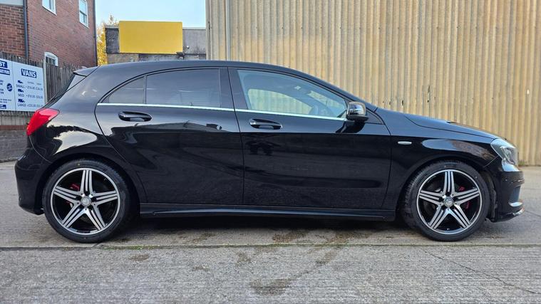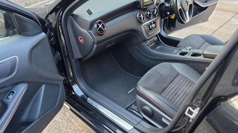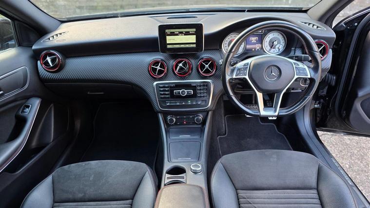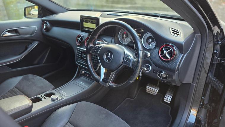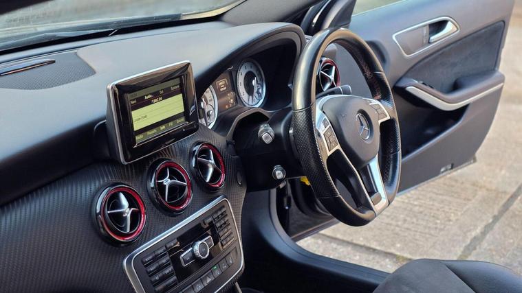 This 2015 Mercedes Benz A Class A250 Engineered by AMG boasts a clear vehicle history and a recent service at 109, 000 miles, offering peace of mind alongside its impressive performance. This Euro 6 compliant model features a potent 2.0L petrol engine, delivering exhilarating acceleration from 0-62mph in just 6.6 seconds. Inside, youll find the luxurious AMG Exclusive Package with Lava Black leather seats featuring striking red perforations, complemented by a Becker Map Pilot satellite navigation system and a rear camera with parking assistance. Safety is paramount, with the Pre-Safe Anticipatory Safety System and rear sidebags providing enhanced protection. The spacious boot offers ample room for all your needs, making this A Class as practical as it is dynamic. The Engineered by AMG trim signifies a higher level of performance and refinement compared to standard models, evident in its sharp handling and responsive engine. This Mercedes Benz A Class is supplied with a 3 month warranty, providing further confidence in your purchase.