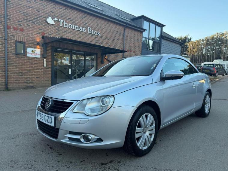 COMES WITH 12 MONTHS FREE AA BREAKDOWN COVER, 3 OWNERS SINCE NEW, MOT 27 FEBRUARY 2027, PART SERVICE HSITORY WITH 5 SERVICES, PARKING SENSORS, ALLOY WHEEL, PART EXCHANGE WELCOME, HPI CLEAR, ULEZ COMPLIANT, SPARE KEY, DELIVERY AND DRIVEAWAY INSURANCE AVAILABLE , , This 2008 Volkswagen Eos TSI presents a rare find with only three previous owners, offering a well maintained example of this stylish convertible. Powered by a 1.4 litre petrol engine, this Eos TSI benefits from semi automatic air conditioning complete with climate control, ensuring a comfortable cabin environment whatever the weather. With an impressive fuel economy of 44 miles per gallon, this Eos TSI offers an economical driving experience. Its low CO2 emissions and low insurance group rating further highlight its cost effectiveness compared to similar vehicles, making it an attractive choice for those seeking both style and practicality.
