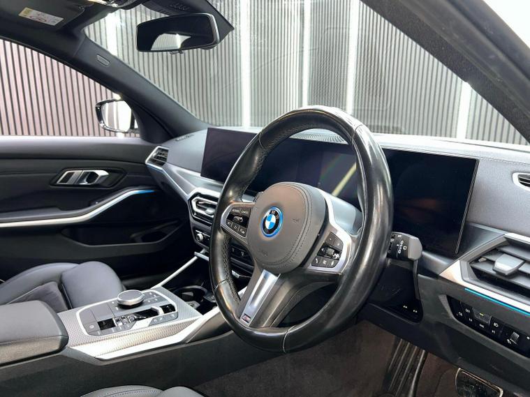 This 2022 BMW 330e M Sport presents an exceptional ownership proposition with its very low mileage of just 24, 000 miles and a single owner from new. This Euro 6 compliant model features a 2.0L petrol plug-in hybrid engine, offering an efficient and dynamic driving experience. Inside, youll find the BMW Live Cockpit Plus with Bluetooth connectivity, and seat heating for both the driver and front passenger for added comfort. Navigating tight spaces is made easier with the Parking Assistant, which includes front and rear sensors along with a rear camera. The car is also equipped with LED headlights for clear visibility and automatic air conditioning to maintain a pleasant cabin temperature. The performance of this 330e M Sport is truly impressive, capable of accelerating from 0 to 62mph in a swift 5.9 seconds, demonstrating its potent hybrid powertrain. This rapid acceleration, combined with the plug-in hybrid technology, sets it apart from many other vehicles in its class, offering a blend of exhilarating performance and eco conscious driving. The M Sport trim further enhances the vehicles sporty appeal and driving dynamics, making it a compelling choice for those seeking a premium saloon with a focus on both efficiency and driving pleasure.