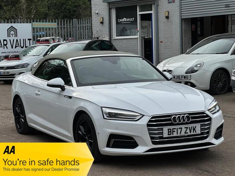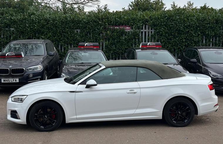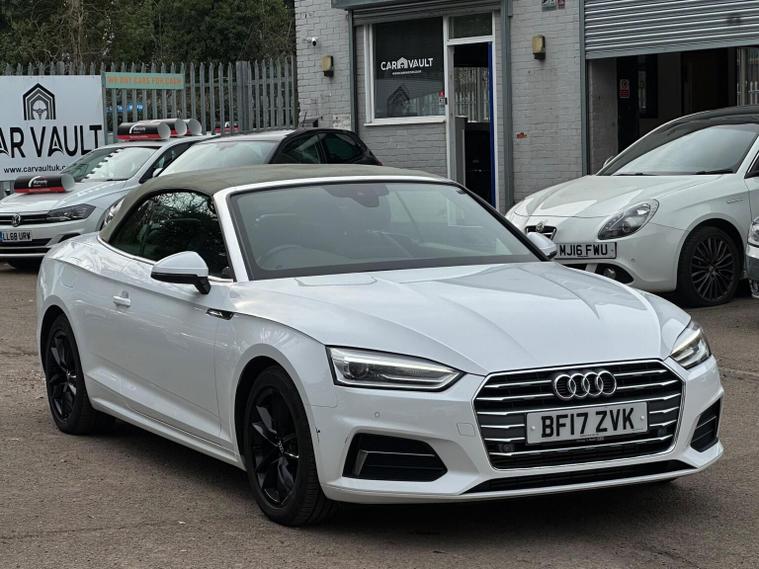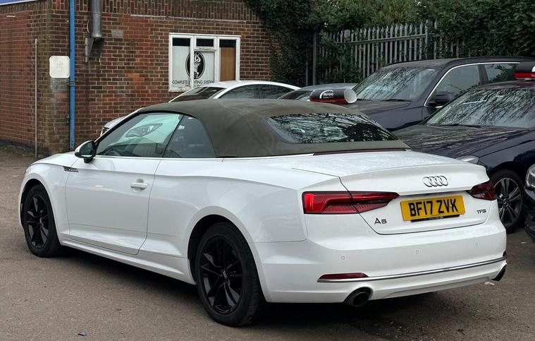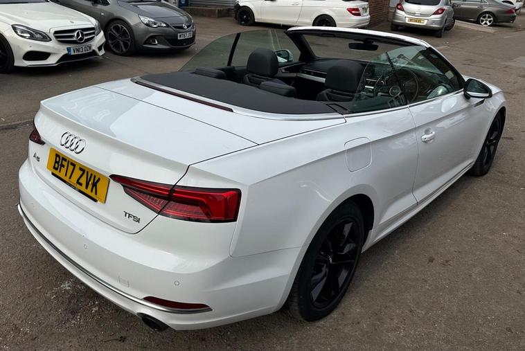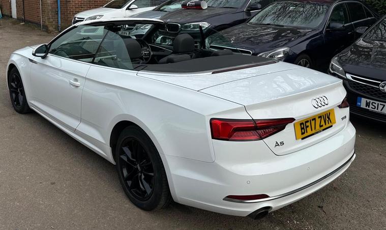 SAME DAY FINANCE AVAILABLE WITH 0 DEPOSIT, CALL OUR FINANCE TEAM FOR A QUOTATION TODAY, GREAT FINANCE PACKAGES, LOW RATE FINANCE, INQUIRE WITH US, ONLY ONE FORMER OWNERS, PARTIAL SERVICE HISTORY, 12 MONTHS MOT AND NEW SERVICE OFFERED ON SALE, 12 MONTHS AA BREAKDOWN COVER, THREE MONTHS WARRANTY, TWO SETS OF KEYS, ZODIAC CLIMATE CONTROL, NAVIGATION SYSTEM, CAR PLAY , HEATED SEATS, CRUISE CONTROL AND LOTS OF OTHERS, DELIVERY AVAILABLE (opt), ALL MAJOR CREDIT & DEBIT CARDS PAYMENT ACCEPTED. OPEN 7 DAYS A WEEK, VISIT OUR WEBSITE FOR MORE CARS: dealer's website This 2017 Audi A5 Cabriolet TFSI Sport is a standout choice, boasting exceptionally low mileage for its age at just 43032 miles and having been cherished by only two owners. This Euro 6 compliant 2.0 litre petrol model offers a refined driving experience, enhanced by the Sport trim. Youll appreciate the convenience of Keyless Go with keyless entry, the comfort of heated front seats, and the ease of the Audi Parking System Plus, which includes front and rear parking sensors. Stay comfortable in all conditions with the Deluxe 3-Zone Climate Control, featuring independent rear air conditioning, and stay connected on the go with the integrated Bluetooth interface. This Audi A5 Cabriolet also excels in practicality and efficiency, making it a superior option compared to many others. Its impressive fuel economy of 50 mpg means fewer stops at the petrol station, and its low CO2 emissions are better for the environment. Furthermore, youll find ample space for your luggage thanks to its large boot, ensuring you dont have to compromise on carrying capacity when enjoying the open air.