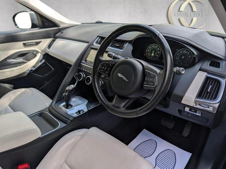 This is a stunning Jaguar E-PACE with a great spec! It comes with heads up display, full heated beige upholstery with memory function, adaptive cruise control, parking camera, sensors, sat nav, low mileage and more!