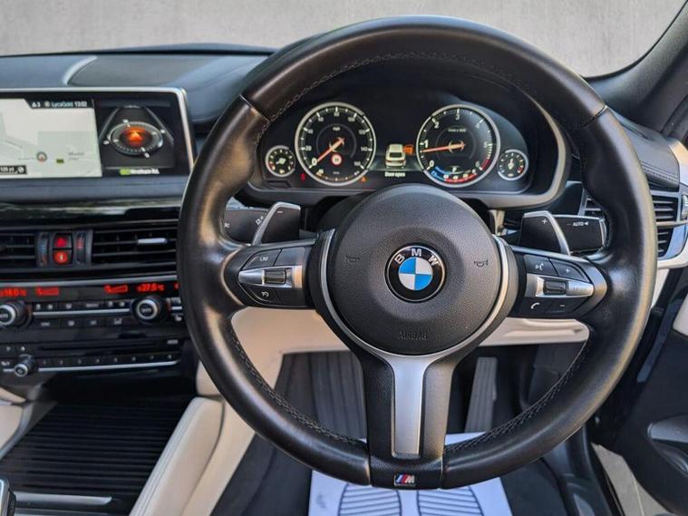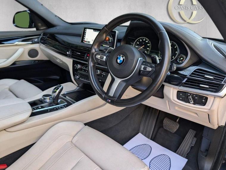 This is a stunning BMW x6 M Sport with open sunroof, heads up display, heated beige leather upholstery, upgraded Harmon Kardon sound system, sat nav, sensors, cruise control, dab radio, ambient lighting, digital cockpit, black pack, body kit, great spec and colour combination and more!