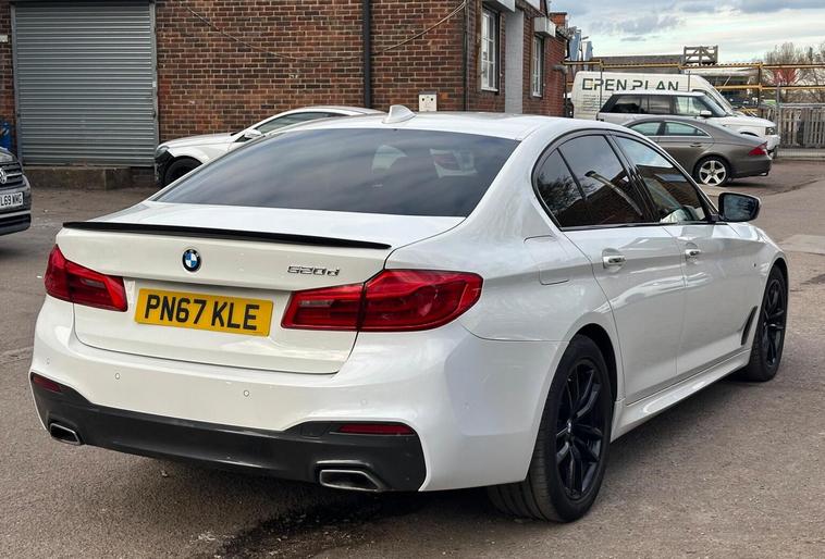 SAME DAY FINANCE AVAILABLE WITH 0 DEPOSIT, CALL OUR FINANCE TEAM FOR A QUOTATION TODAY, GREAT FINANCE PACKAGES, LOW RATE FINANCE, INQUIRE WITH US, ULEZ COMPLIANT, 12 MONTHS MOT AND NEW SERVICE ( BY BMW) OFFERED ON SALE, 12 MONTHS AA BREAKDOWN COVER, THREE MONTHS WARRANTY, ONLY THREE FORMER OWNERS, FULL SERVICE HISTORY, BLUETOOTH CONNECTIVITY, CLIMATE CONTROL, CRUISE CONTROL FULL LEATHER INTERIOR, NAVIGATION SYSTEM, HEATED SEATS, DELIVERY AVAILABLE (opt), ALL MAJOR CREDIT & DEBIT CARDS PAYMENT ACCEPTED. OPEN 7 DAYS A WEEK, VISIT OUR WEBSITE FOR MORE CARS: dealer's website This 2017 BMW 5 Series 520d M Sport offers an exceptional blend of performance and efficiency, boasting a remarkable 66 mpg fuel economy. As a Euro 6 compliant vehicle, it features a powerful yet economical 2.0L diesel engine, ensuring a refined driving experience. The M Sport trim enhances its sporty appeal, while practical features like Bluetooth Hands Free with USB Audio Interface and Voice Control, Dual Zone Automatic Air Conditioning, and Front and Rear Park Distance Control with parking assistance make every journey comfortable and convenient. Enjoy the added comfort of heated front seats and the convenience of automatic headlight activation thanks to the rain sensor. This BMW 5 Series excels with its impressive acceleration, reaching 0-62mph in just 7.5 seconds, demonstrating its dynamic capabilities. Its low CO2 emissions are a significant advantage, making it a more environmentally conscious choice compared to many other vehicles in its class. Furthermore, the generous boot space provides ample room for luggage or shopping, adding to its practicality for everyday use and longer trips. These highlights collectively showcase the superior qualities of this 520d M Sport.