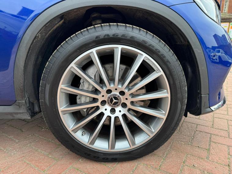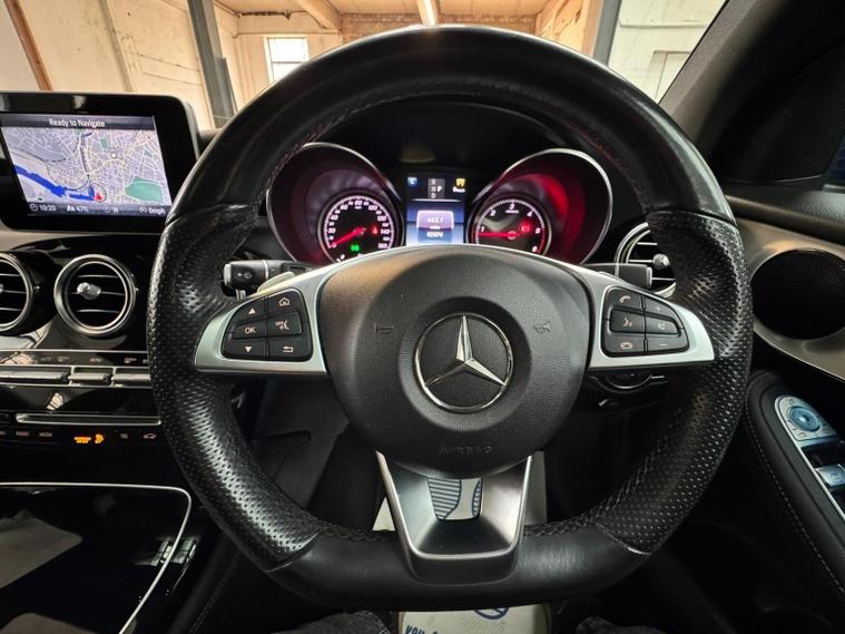This 2018 Mercedes Benz GLC250d AMG Line (Premium) boasts a single owner from new and a clear vehicle history check, offering peace of mind. This four wheel drive SUV features a powerful 2.1L Euro 6 diesel engine, delivering an impressive 0-62mph in just 7.6 seconds. Its AMG Line trim enhances its sporty appeal with 20in AMG Multi-Spoke Alloy Wheels in Titanium Grey, complemented by a luxurious Black leather interior. Practicality is also key, with a generous boot space perfect for any journey. Experience exceptional efficiency with a highlighted fuel economy of 57 mpg, demonstrating its advantage over similar vehicles. The GLC250d comes equipped with Audio 20 CD with Bluetooth for seamless connectivity, and Thermatic automatic climate control to ensure comfort for all occupants. Automatic headlamp activation adds convenience, while the MOT remains valid until March 2027. With a substantial towing weight of 2500 kg and a 6 month warranty included, this Mercedes Benz GLC is ready for adventure.