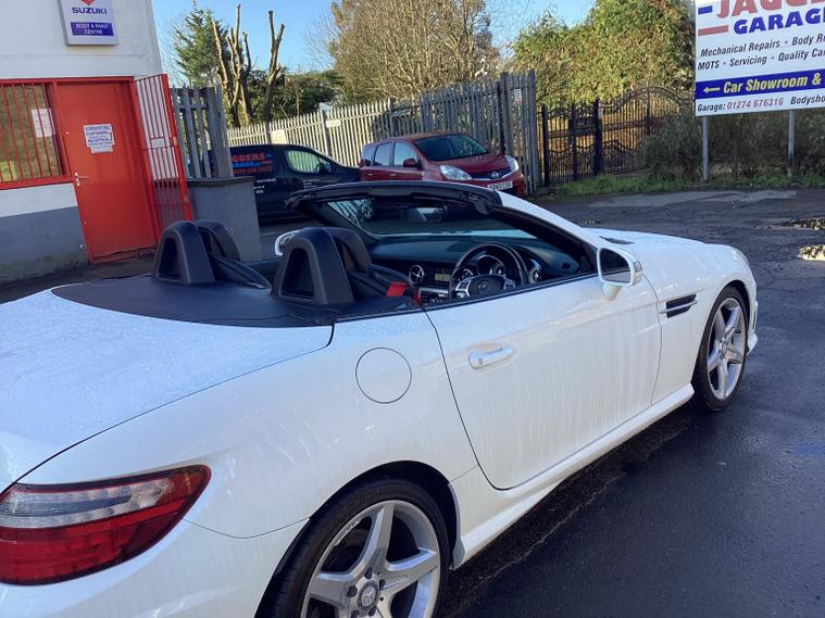 This 2014 Mercedes Benz SLK250 CDI AMG Sport offers a compelling blend of performance and practicality. Finished in the desirable AMG Sport trim, this diesel convertible boasts a potent 2.1 litre engine, delivering an impressive 0-62mph time of just 6.7 seconds. Inside, youll find a comfortable cabin equipped with Bluetooth for hands-free calls and a Headlamp Assist system that automatically activates the headlights. The air conditioning ensures a pleasant environment whatever the weather, and youll be pleased to discover a surprisingly large boot space, making it a versatile choice for everyday use and longer journeys alike. The AMG Sport designation signifies a sportier feel and enhanced styling, setting this SLK apart from other models. Its brisk acceleration means you can enjoy spirited driving, while the efficient diesel engine offers a good balance of power and economy. The inclusion of Bluetooth and automatic headlights are thoughtful features that enhance the driving experience, and the generous boot capacity is a practical advantage not always found in this class of vehicle.
