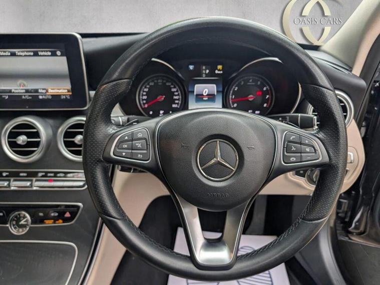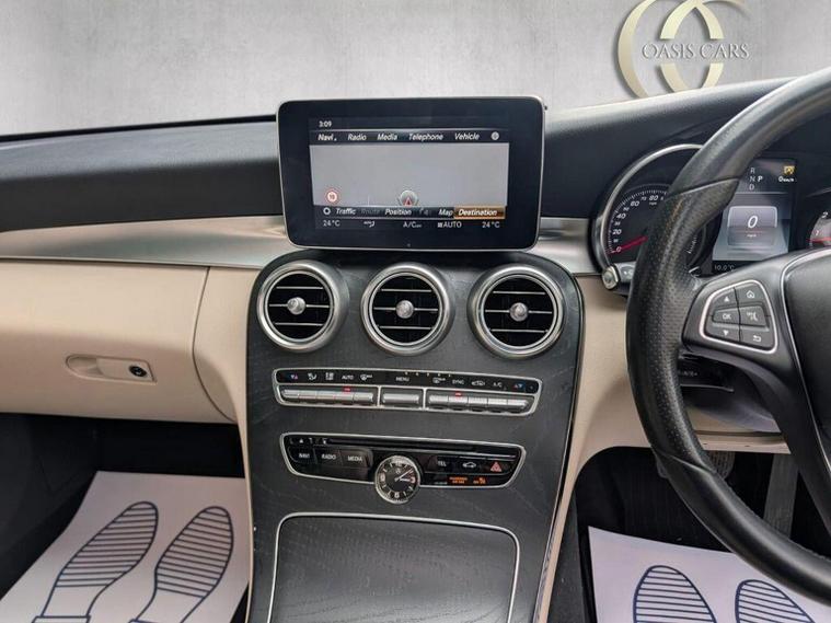 This is a stunning low mileage Mercedes C class sport Premium Plus with opening sunroof and sunblind, upgraded Burmester sound system, parking camera, sensors, dab radio, sat nav, full heated beige leather upholstery, and more!