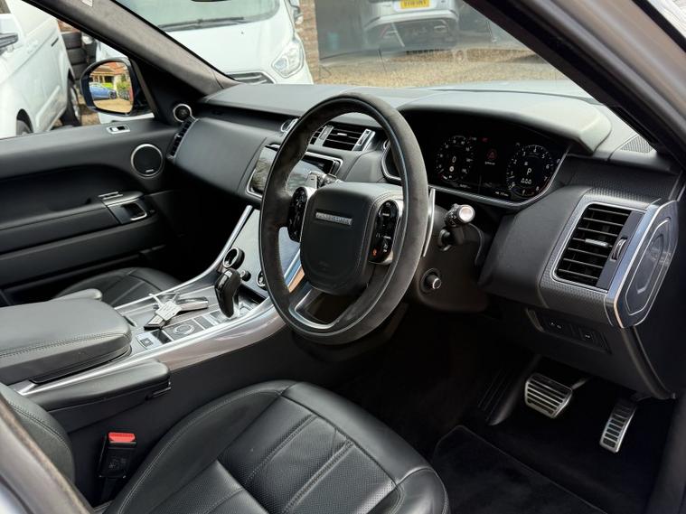 FINANCE AVAILABLE...PART EXCHANGE WELCOME, *3 MONTHS WARRANTY AS STANDARD or upgrade to RAC EXTENDABLE WARRANTY*, Priory Motors are proud to offer this stunning Range Rover Sport 3.0 P400 HST Dynamic presented in Halifax Silver metallic with immaculate Gloss Black 22 inch alloy wheels with great Pirelli Scorpion tyres all round. Must be seen to appreciate how stunning this car really is. Specification;, 2 keys, Hakiba Silver metallic, Heated/Cooled Black leather interior, Heated steering wheel, Front and rear parking sensors with Reversing camera, Cruise control, Keyless entry and go, Privacy glass, High beam assist, Great Pirelli scorpion tyres all round, Panoramic sun roof, Meridian Surround sound, Electric deployable tow bar, Alcantara steering wheel and gear selector, Carbon fibre exterior pack etc etc, 3 Service Prints ! Just undergone major Service. *VIEWING BY APPOINTMENT ONLY*