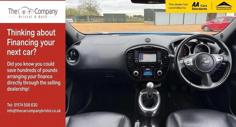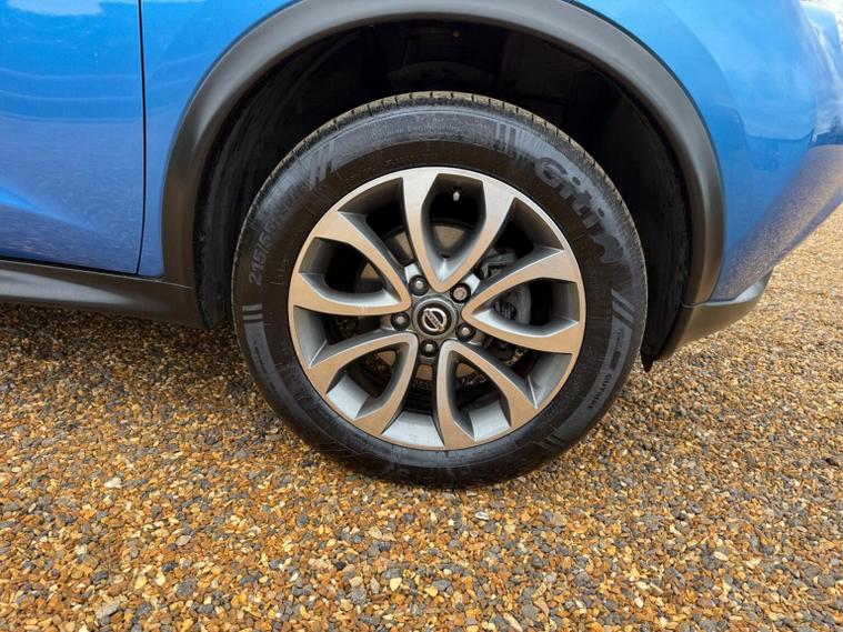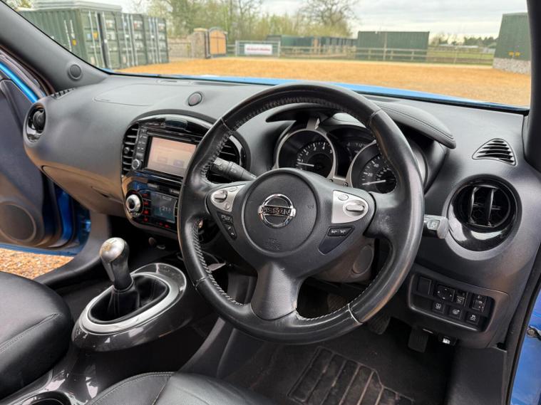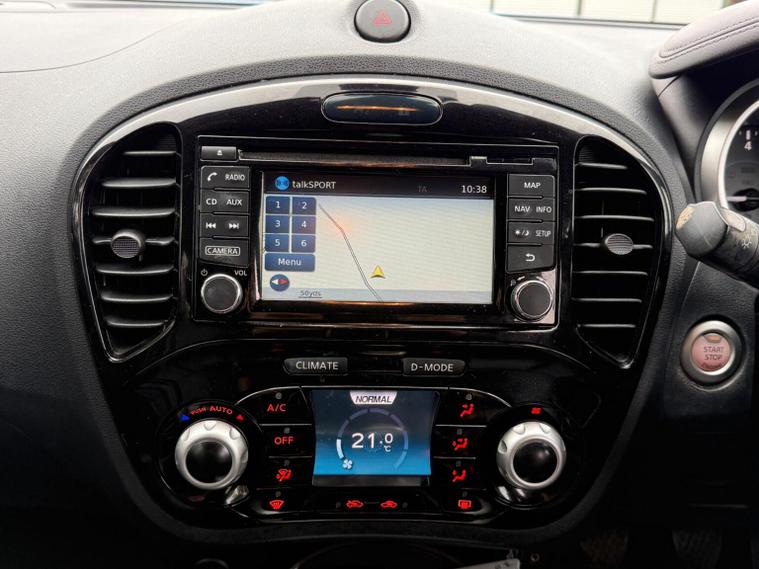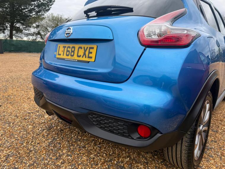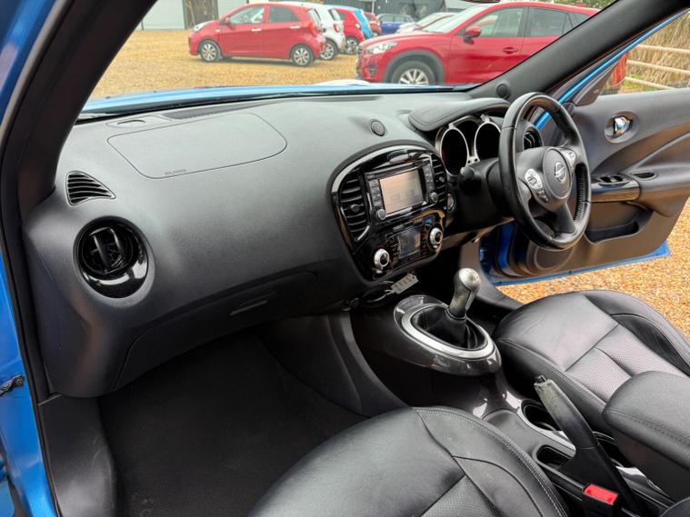 Benefit from the reassurance of a full service history and an MOT valid until November 2026 on this 2018 Nissan Juke Tekna. This stylish 1.6 litre petrol model, which meets Euro 6 emissions standards, also comes with a 3 month warranty for your peace of mind. Inside, you will find premium black leather upholstery complemented by a black centre console, creating a sophisticated cabin. This Juke Tekna is equipped with a suite of advanced features designed to enhance your driving experience. The 360 degree around view monitor and colour reversing camera provide exceptional parking assistance, while the blind spot warning system adds an extra layer of safety. Enjoy immersive audio with the BOSE Personal Sound System. Furthermore, this vehicle sits in a low insurance group, making it a cost effective choice compared to similar models.