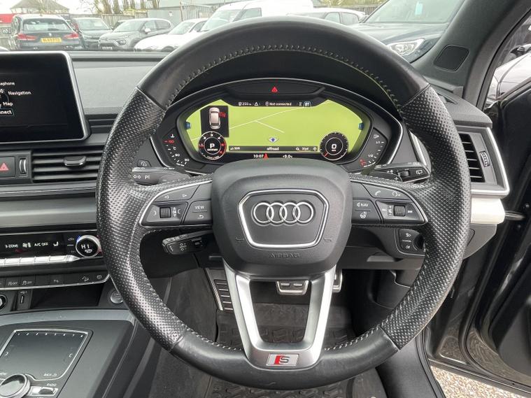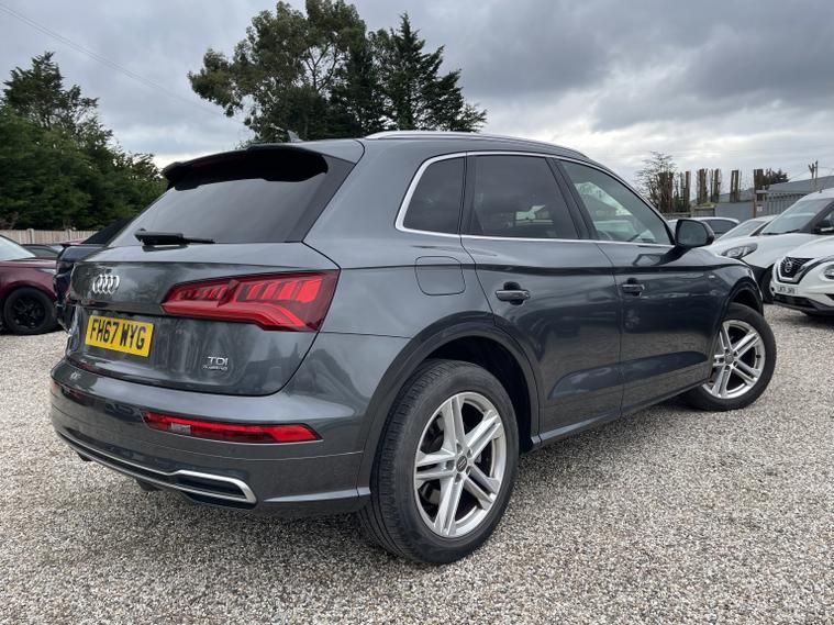 Essex Car Fleet are delighted to present this stunning 2017 67 Audi Q5 2.0 TDI Quattro S Line S Tronic, finished in the highly desirable Daytona Grey Pearl with 87, 010 miles, a premium SUV that delivers the perfect balance of performance, comfort and practicality, enhanced further by the sought-after Tech Pack. This example comes with a comprehensive service history, with maintenance recorded at 31, 191 miles on 23/12/22, followed by a service on 31/07/24, a cambelt and water pump replacement carried out on 15/08/24, and most recently serviced on 11/11/25, offering excellent peace of mind for its next owner. The vehicle boasts a strong road presence with 19in alloy wheels in a 5-twin-spoke star design with diamond cut finish, complemented by full S Line styling including front and rear bumpers, side skirts, roof spoiler and S Line badging, along with aluminium roof rails, high-gloss exterior package and a distinctive radiator grille in twilight grey with matt aluminium accents. Inside, the cabin reflects Audis renowned build quality with front sports seats featuring S embossed logos, heated front seats, 4-way electric lumbar support and contrast stitching throughout, paired with a high multi-function 3-spoke leather steering wheel with perforated grips, S badging and gearshift paddles. The interior is further enhanced by matt brushed aluminium inlays, stainless steel pedals, illuminated door sill trims, black cloth headlining and LED interior lighting pack, creating a refined yet sporty environment. Technology is well catered for with the MMI Navigation system with SD card functionality, MMI Radio Plus with 7in colour display and controller, Audi smartphone interface, Bluetooth connectivity, DAB digital radio, Audi sound system, CD drive, dual SDXC card readers, USB and AUX connectivity, along with Audi Connect infotainment services and safety features including e-call. The colour drivers information system with 7in display and voice control system ensures ease of use and convenience on every journey. Comfort and convenience features include deluxe 3-zone climate control, cruise control with speed limiter, auto-dimming rear view mirror, light and rain sensors, automatic headlight adjustment, keyless go, electric windows front and rear, electrically adjustable and heated door mirrors, front centre armrest, electric boot lid release and power operated tailgate, along with privacy glass and acoustic glazing for a quieter cabin experience. Safety and driver assistance systems include Audi Pre-Sense City, Audi Parking System Plus, hill hold assist, hill descent control, ESC with ABS, ASR and EDL, a full 6-airbag system, pop-up bonnet for pedestrian protection, seat belt monitoring and tyre pressure warning system, providing reassurance for both driver and passengers. Practicality is a key strength with a versatile 40-20-40 split folding rear seat bench, rear armrest, removable luggage compartment floor, net partition, stainless steel loading sill protector, tow bar preparation, ISOFIX child seat mounting points and generous storage throughout, making it an ideal family vehicle. Further features include Audi Drive Select, dynamic suspension, electromechanical power steering, electromechanical parking brake, remote central locking, anti-theft alarm, locking wheel bolts, heat insulating glass, acoustic windscreen, tool kit and jack, tyre repair kit and underbody protection in body colour. This Audi Q5 S Line Quattro offers excellent performance and all-weather capability thanks to its quattro all-wheel drive system, combined with a smooth S Tronic automatic gearbox, making it a superb choice for those seeking a refined yet capable premium SUV. Early viewing is highly recommended. With our location based in Battlesbridge in Essex, Enjoy haggle-free buying experience where you can drive away the same day of prior arranged appointment. Please see our website for details. Call now or enquire online for a no-obligation test drive, finance q