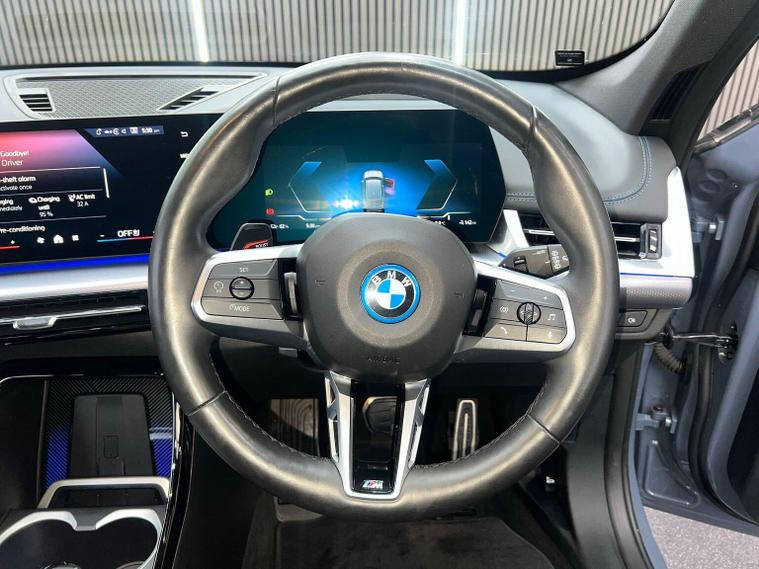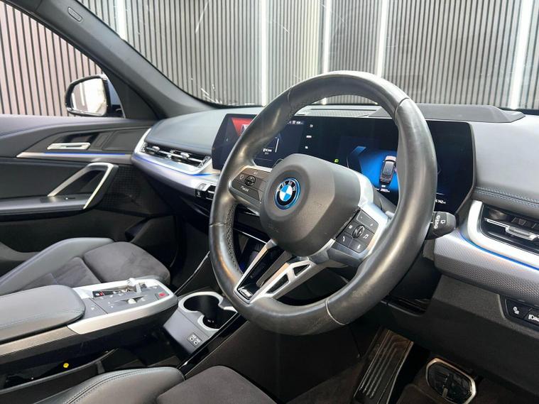 This 2024 BMW iX1 20 M Sport is a superb example, having had only one owner from new. This electric vehicle boasts the M Sport trim, offering a dynamic driving experience. With a 67 kWh battery, it provides a maximum range of 287 miles, ensuring you can travel further on a single charge. Charging is convenient, taking approximately 9 hours and 10 minutes at home using a 7kW charger, and a rapid 33 minutes for an 80% charge at a public charging station. The iX1 20 M Sport comes equipped with the Technology Plus Pack, which includes a Head Up Display, LED headlights, keyless entry, a 360 degree camera for effortless parking, and wireless phone charging. Inside, youll find automatic two zone climate control, the BMW Live Cockpit Plus with Bluetooth connectivity, and a Parking Assistant with rear camera and sensors. Comfort is enhanced by front heated seats. The generous boot space further adds to the practicality of this impressive electric SUV, making it a standout choice in its class.