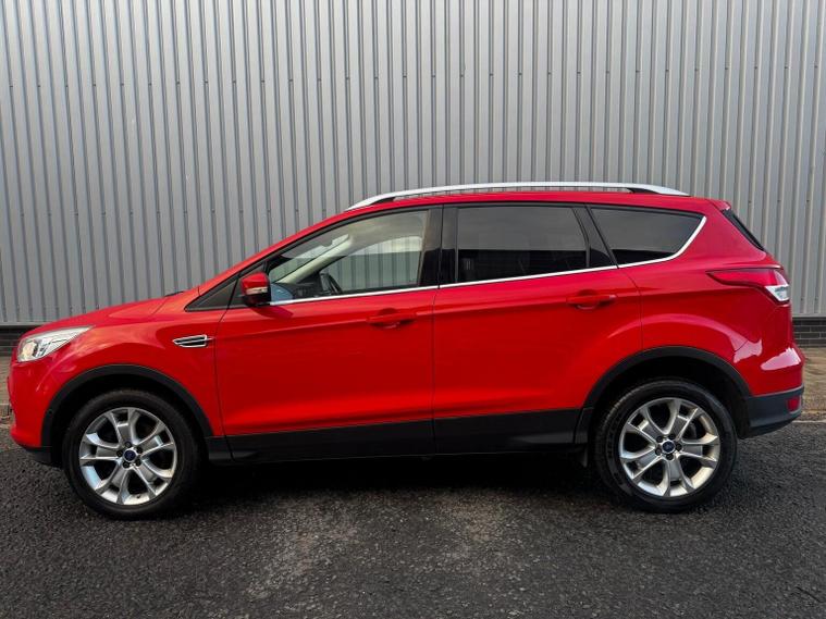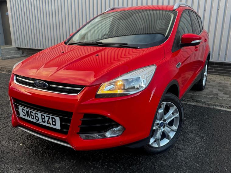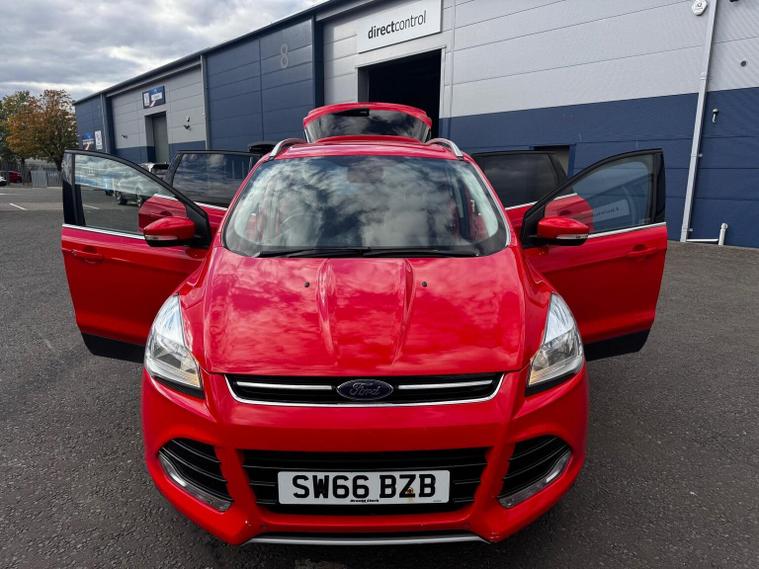 2016 66 Ford Kuga 2.0 TDCI 180 Titanium , red, ulez compliant, will come with a fresh mot, 106600 miles from new comes with a Full service history up to date, 10 stamps in the book full service is included in the sale bringing it all up to date and current miles, 1 owner since brand new , registered 6 weeks prior to 2017, half leather, front and rear parking sensors, full electric pack, 2 keys, looks amazing and drives extremely well, cheaper part ex welcome at tarde value, finance available, 6 months parts and labour warranty included, delivery available anywhere in the uk, This 2016 Ford Kuga TDCi Titanium is presented with a clear vehicle history, offering you peace of mind. This stylish SUV is equipped with a robust 2.0 litre diesel engine and benefits from Four Wheel Drive capability, making it a capable companion for various journeys. The Titanium trim level ensures a well appointed interior, and this particular model meets Euro 6 emissions standards. With an impressive fuel economy of 54 miles per gallon, this Kuga TDCi Titanium is an economical choice, further enhanced by its low CO2 emissions. These highlights demonstrate how this vehicle offers a more efficient and environmentally conscious driving experience compared to many others in its class.