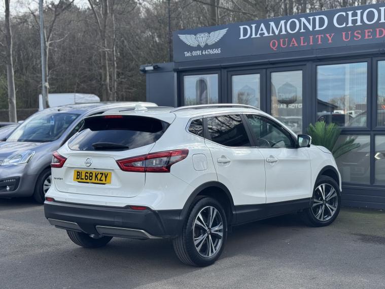 3 months warranty, 12 months AA Breakdown Cover, Finance available, Part exchange welcome, 195 road tax, This 2018 Nissan Qashqai DIG T N Connecta presents an exceptional opportunity with remarkably low mileage for its age, having covered just 44, 584 miles. This Euro 6 compliant 1.3 litre petrol model, registered in 2018, comes with an MOT valid until February 2027, offering peace of mind. The N Connecta trim boasts a wealth of technology, including the Nissan Connect 7in touchscreen navigation and entertainment system, which seamlessly integrates with Android Auto and Apple CarPlay. Further enhancing convenience are the Intelligent Auto Headlights, Bluetooth with audio streaming, and a comprehensive Tech Pack featuring rear camera parking assistance. The Qashqai DIG T N Connecta stands out with its intelligent features designed to make driving easier and more enjoyable. The Intelligent Around View Monitor provides a 360 degree camera view, significantly aiding parking manoeuvres and highlighting its advanced parking assistance capabilities. This vehicle also benefits from a low insurance group and low CO2 emissions, indicating that it is more economical to own and run compared to many other vehicles in its class.