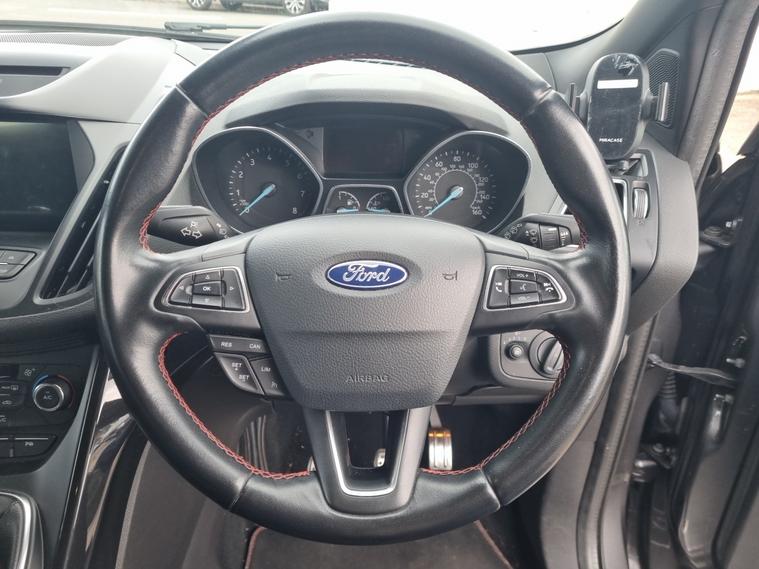 This 2018 Ford Kuga T ST Line offers excellent peace of mind with its MOT valid until July 2026. This stylish SUV is equipped with a 1.5 litre petrol engine and meets Euro 6 emissions standards. It features Enhanced Active Park Assist, which includes front and rear parking sensors, making manoeuvring effortless. Inside, youll find DEATC Dual-Zone Electronic Automatic Temperature Control for personalised comfort, alongside a Ford DAB Navigation System with Ford SYNC3, offering seamless Bluetooth connectivity. The vehicle also benefits from automatic halogen headlights with distinctive LED daytime running lights. The Ford Kuga T ST Line stands out with its impressive fuel economy, achieving up to 45 miles per gallon, which is a notable advantage over many similar vehicles. This efficiency, combined with its advanced parking assistance and integrated navigation system, ensures a convenient and enjoyable driving experience. The automatic headlights further enhance safety and ease of use, automatically activating when needed.