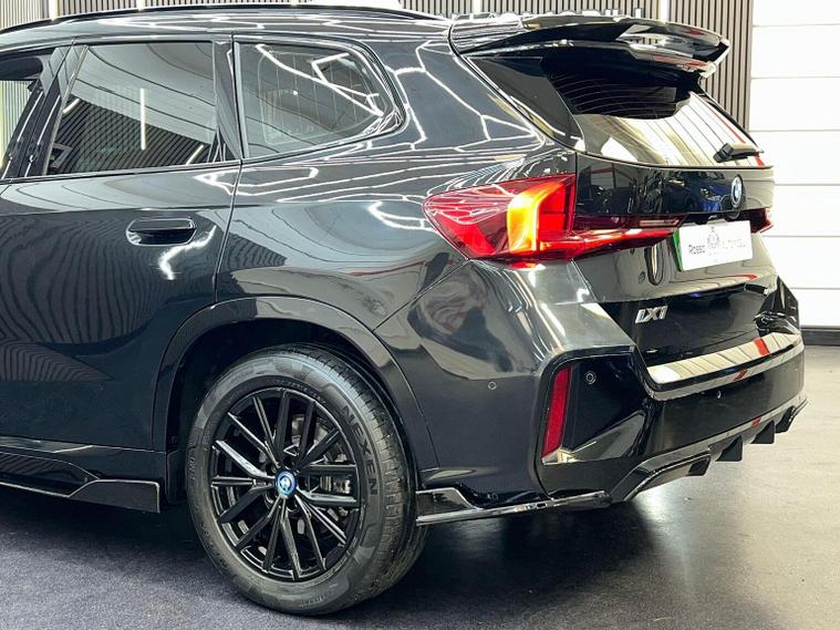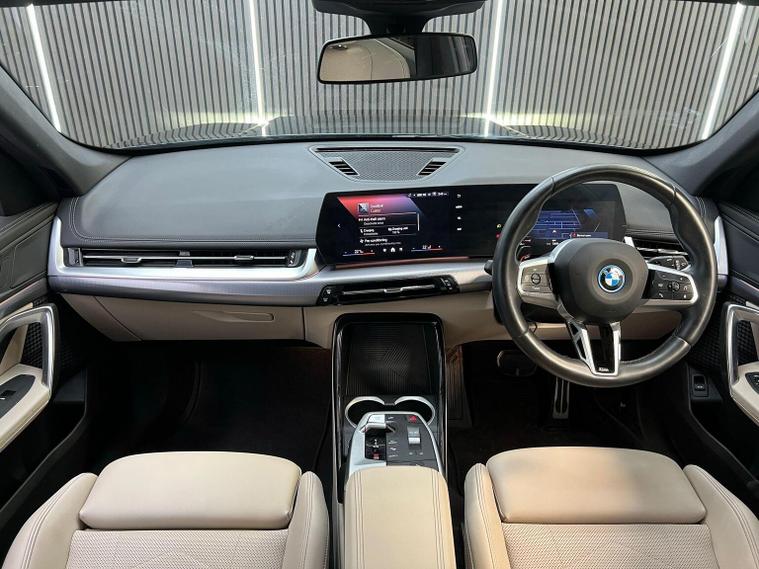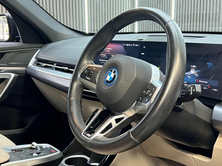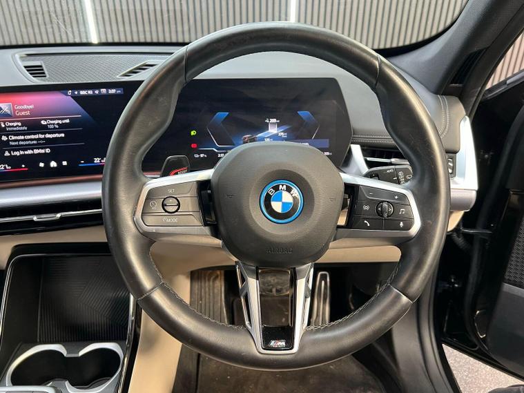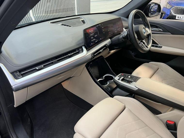This 2024 BMW iX1 20 M Sport is a pristine example, having had only one owner since new. This electric vehicle boasts the M Sport trim, offering a blend of dynamic styling and advanced technology. Inside, youll find comfortable Perforated Veganza Oyster Sensatec upholstery, complemented by automatic two zone air conditioning for a pleasant cabin environment. Navigating and parking are made easier with the Parking Assistant, which includes a rear camera and rear sensors, and the BMW Live Cockpit Plus, featuring Bluetooth connectivity. The automatic headlights are part of the useful Visibility Functions, ensuring you always have optimal illumination. With a substantial 67 kWh battery, this iX1 offers a maximum range of 287 miles on a full charge, a highlight that sets it apart from many other electric cars. Charging is convenient, taking approximately 9 hours and 10 minutes at home using a 7kW charger, while rapid public charging can replenish the battery from empty to 80% in just 33 minutes. Furthermore, the iX1 provides ample storage with its large boot space, making it a practical choice for everyday use and longer journeys.