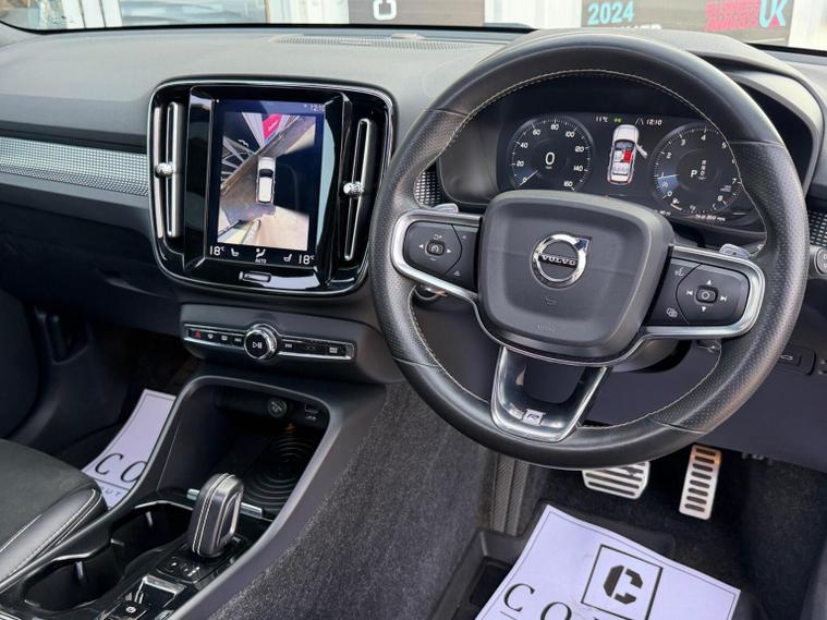 This 2018 Volvo XC40 T5 R Design boasts a clear vehicle history, offering you peace of mind. This stylish SUV features a robust 2.0 litre petrol engine paired with Four Wheel Drive for confident handling in various conditions. As a Euro 6 compliant vehicle, it meets modern emissions standards. The R Design trim level enhances its sporty appeal, and youll appreciate the convenience of a power drivers seat with memory settings for both the seat and exterior mirrors. Enjoy an open and airy cabin with the power glass tilt and slide panoramic sunroof, complete with a sun curtain. Experience superior audio with the Sensus Connect system, featuring a premium sound system by Harman Kardon. Keyless drive allows for effortless entry and starting, and the handsfree tailgate opening and closing adds further convenience. For added comfort during colder months, the XC40 includes a heated steering wheel. This particular model stands out with its impressive acceleration, reaching 0-60mph in just 6.2 seconds, demonstrating its dynamic performance capabilities compared to other vehicles in its class.