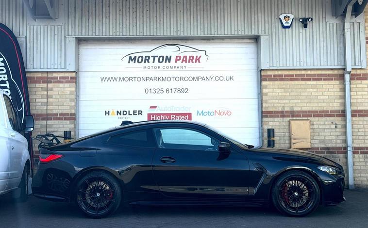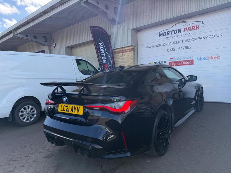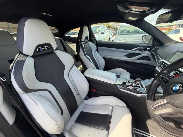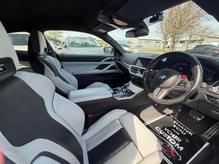 This 2021 BMW M4 BiTurbo Competition is presented with a clear vehicle history check, offering peace of mind for its next owner. This striking M4, featuring a powerful 3.0L Petrol Engine and meeting Euro 6 emission standards, comes in the Competition trim. Inside, youll find a wealth of premium features designed for comfort and convenience, including electric front seat adjustment with driver memory, a sophisticated Harman Kardon loudspeaker system, and automatic three-zone air conditioning. Stay connected on every journey with Connected Package Professional, offering seamless integration for Android Auto and Apple CarPlay, and enjoy the added comfort of heated seats for both the driver and front passenger. The performance of this M4 is truly exceptional, accelerating from 0-62mph in a remarkable 3.9 seconds, a figure that highlights its superior capability compared to many other vehicles in its class. Further enhancing its appeal are practical considerations such as a large boot space, making it versatile for everyday use, and a surprisingly low insurance group, which can contribute to lower running costs. These elements combine to make this BMW M4 BiTurbo Competition a compelling choice for those seeking exhilarating performance, advanced technology, and everyday usability.