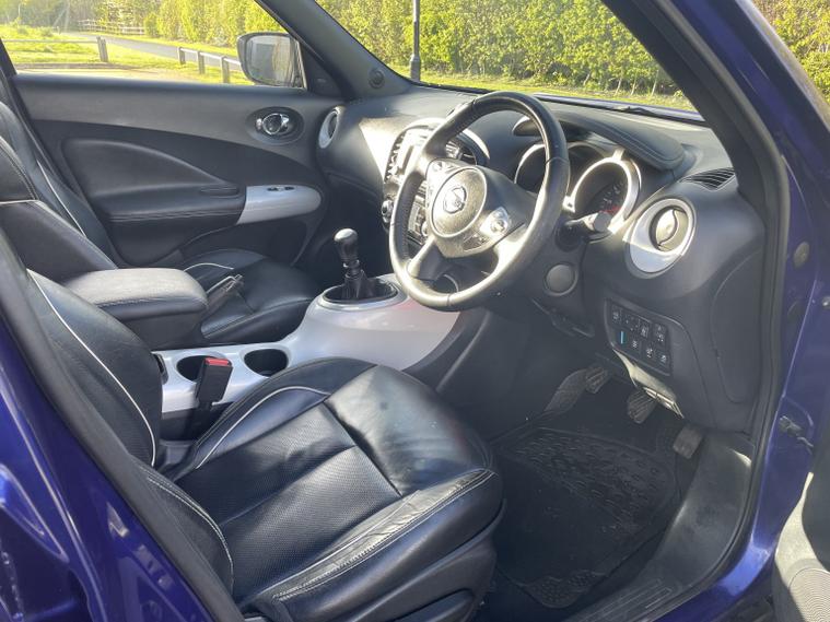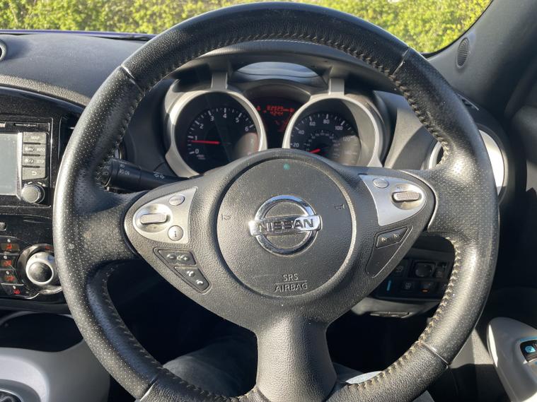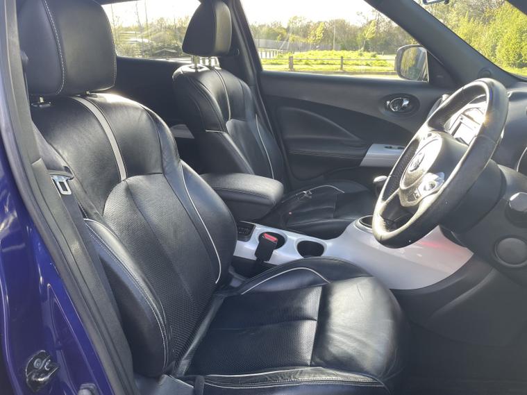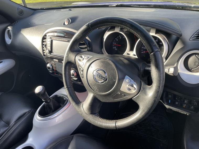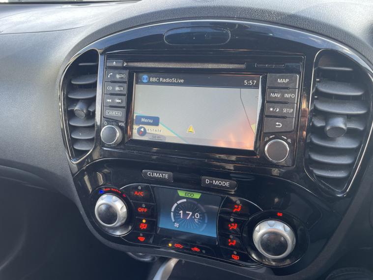 - Full Service History, - 2 Keys, - Sat Nav + Bluetooth Media, - Reverse Camera + 360 Camera + Lane Assist, - Folding Wing Mirrors + Leather Seats, - MOT till December 2026, This 2014 Nissan Juke DIG-T Tekna offers excellent peace of mind with its MOT valid until December 2026 and a clear vehicle history check. This stylish hatchback is equipped with a 1.2 litre petrol engine and features a rear parking camera with parking assistance, blind spot warning for added safety, and climate control to keep you comfortable. Inside, youll find heated front seats for those colder journeys and Bluetooth integration for seamless telephone connectivity. The Nissan Juke DIG-T Tekna stands out with its impressive fuel economy, achieving up to 50 miles per gallon, which indicates it is more economical than many similar vehicles. Furthermore, its low insurance group and low CO2 emissions suggest that running costs are kept to a minimum, making it a sensible choice for many drivers.