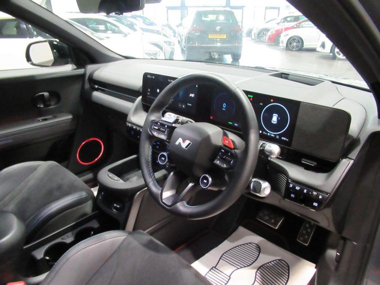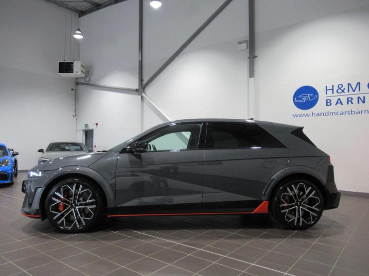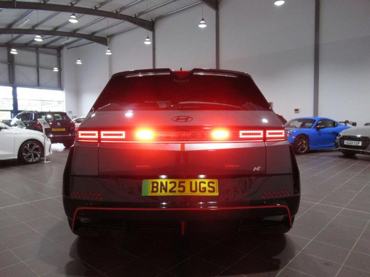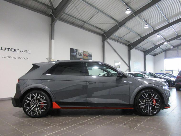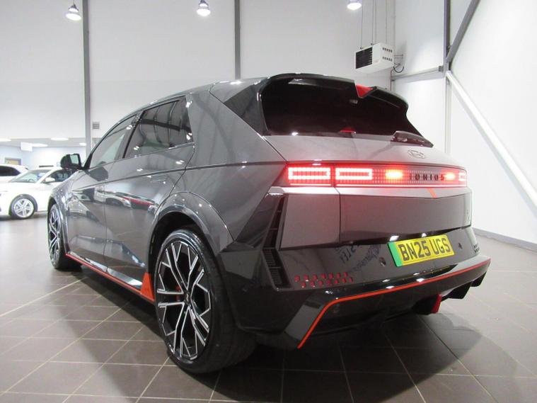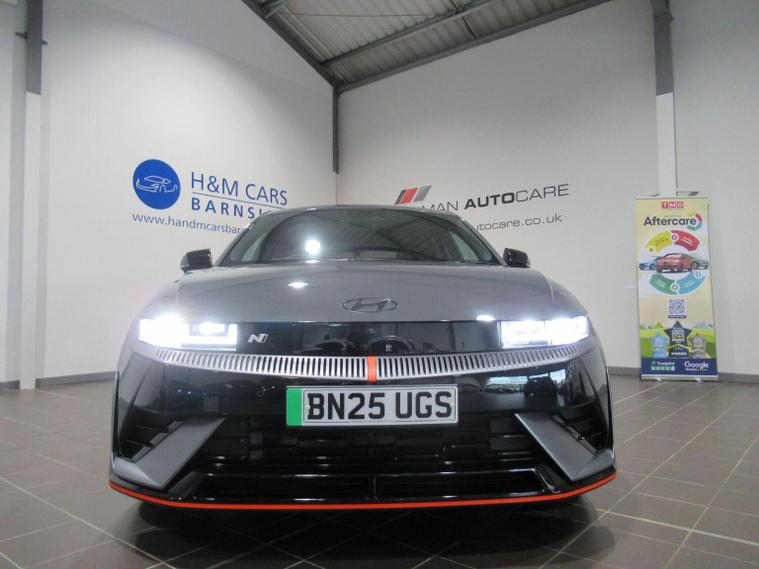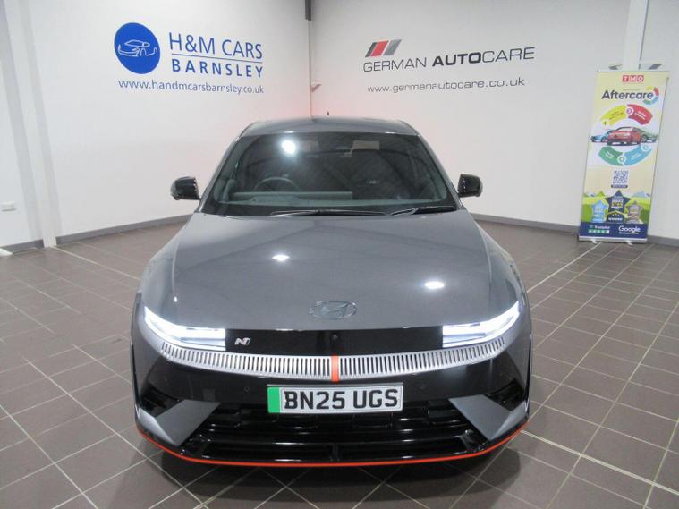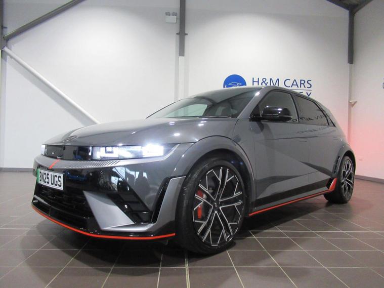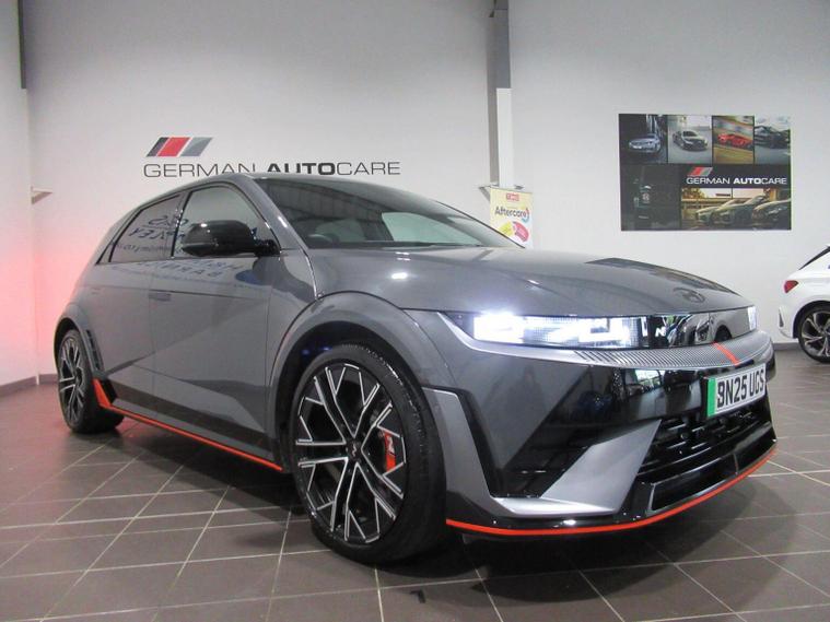 This 2025 Hyundai IONIQ 5 N is a remarkable example, boasting exceptionally low mileage for its age with only 5450 miles covered and a single owner from new. This all wheel drive electric vehicle features an 84 kWh battery, offering a maximum range of 278 miles when new. Inside, youll find a premium experience with a BOSE sound system featuring 7 speakers and a subwoofer, dual zone climate control for personalised comfort, and seamless Bluetooth connectivity with voice recognition. Navigating tight spots is made easy with the surround view monitor, providing a 360 degree camera system, and the smart key allows for effortless keyless entry and power on-off. The performance of this IONIQ 5 N is truly impressive, with a rapid 0-62mph acceleration time of just 3.4 seconds, setting it apart from many other vehicles. When it comes to charging, you can achieve a full charge at home using a 7kW charger in approximately 12 hours and 46 minutes, while rapid public charging can take the battery from empty to 80% in as little as 20 minutes. This electric hatchback also offers generous boot space, making it practical for everyday use and longer journeys.