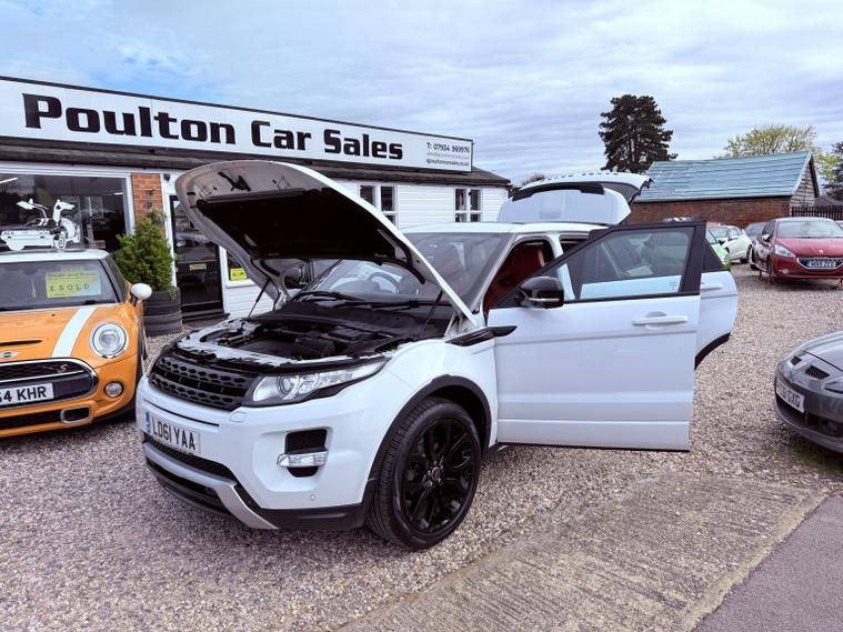 Well Maintained 2011 (61) Land Rover Range Rover Evoque SD4 Dynaic, 2.2 Turbo Diesel With 190BHP, 6 Speed Automatic, 5 Door SUV, Finished In White With Contrasting Black Alloy Wheels & Body Styling, Fantastic Spec Including Glass Panoramic Roof With Electric Sunblind, Full Red Leather Interior With Heated Sports Front Seats Plus Electric Seat Adjustment & Memory Function For The Driver, Touch Screen Radio With Meridian Sound System And TV Function, Bluetooth, Twin Zone Climate Control, Heated Font & Rear Windscreens, Switchable Drive/Terrain Modes, Front & Rear Parking Sensors With Cameras & Parking Assistance, Cruise Control, Automatic Lights & Wipers, Electric Power Fold Door Mirrors, Front & Rear Electric Windows, Rear Privacy Glass, Electric Boot Opening/Closing, Spare Wheel, Xenon Headlamps, LED Day Time Running Lamps, 20 Inch Alloy Wheels, Keyless Entry & Push Button Start Plus More, Good Service History (Last Serviced 05/12/2025 @ 107, 732 Miles), Timing Belt & Water Pump Replaced 19/12/2025 @ 107, 836 Miles, Long MOT (Expires 16/12/2026), Same Owner Since 21/04/2023, 3 Months Engine And Drivetrain Warranty With Options To Extend, Finance Available, HPI Clear, AA Approved Dealer, 12 Months Breakdown Cover Free Of Charge, Driveaway Insurance Available, All Of Our Cars Are Supplied With A Workshop Inspection Including MOT & Service If Required Plus A Full Valet, Debit Card Payments Accepted, FCA Regulated Dealer, No Admin Fees, Part Exchange Welcome, Delivery Can Be Arranged For An Additional Fee, Sunday Viewings Available By Pre Arranged Appointments, dealer's website