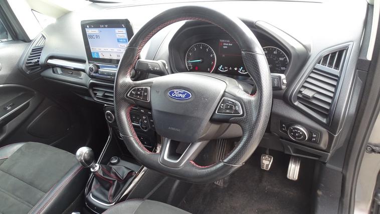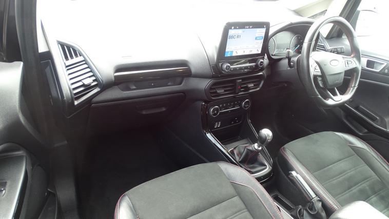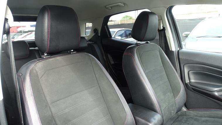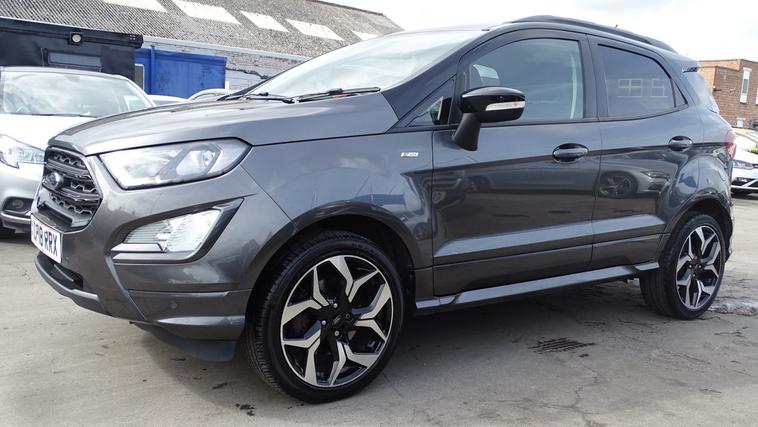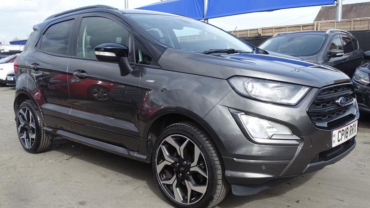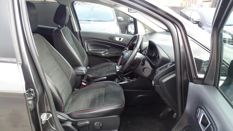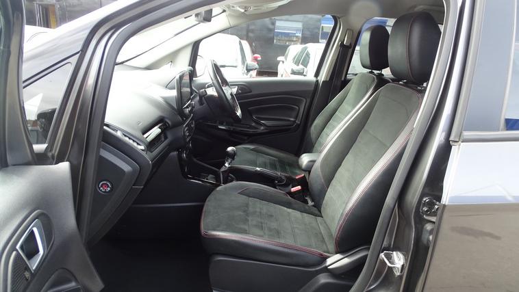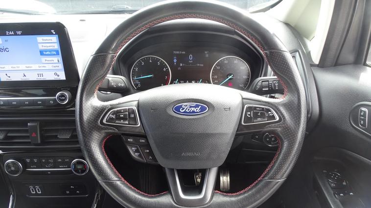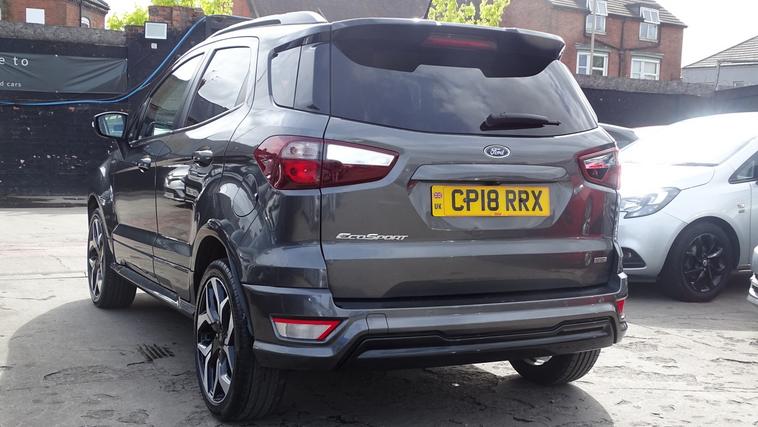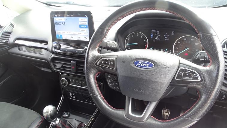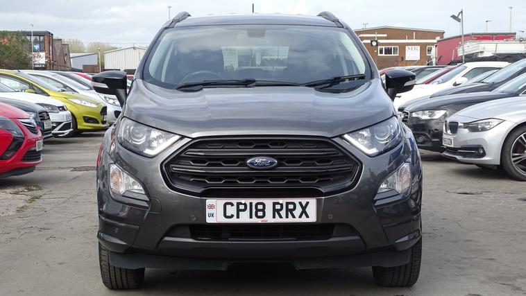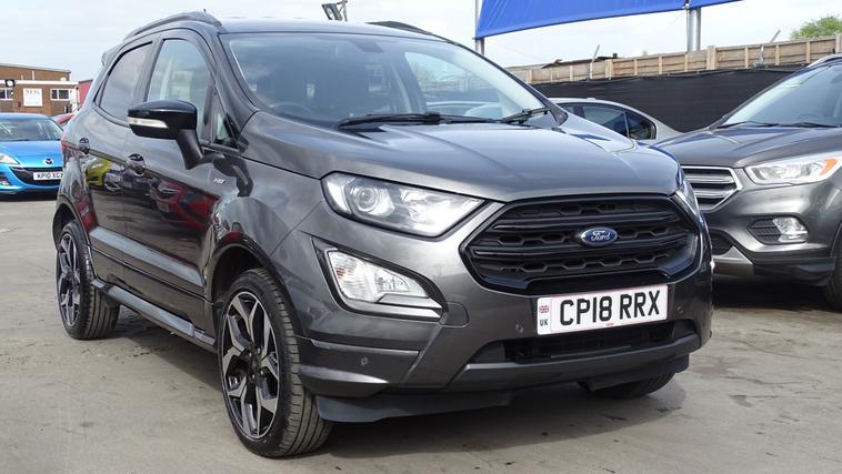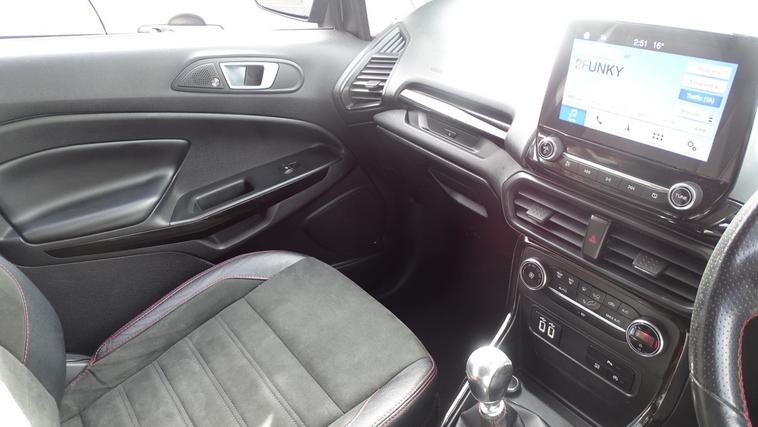 This 2018 Ford EcoSport T ST-Line offers excellent peace of mind with its MOT valid until August 2026. This stylish compact SUV is equipped with a 1.0L petrol engine and meets Euro 6 emissions standards. Inside, youll find the convenient Ford Navigation System featuring Ford SYNC 3, which seamlessly integrates with Apple CarPlay and Android Auto, allowing for easy access to your smartphone apps. For added confidence when parking, it includes a rear view camera and rear parking sensors. The ST-Line trim is further enhanced by sporty ST-Line bumpers and side skirts, and practical halogen headlamps with LED day running lights. The rear seats offer versatility with a 60-40 split fold and tumble function. Experience impressive fuel economy with this Ford EcoSport, achieving up to 53 miles per gallon, which indicates it is more economical than many similar vehicles. Its low CO2 emissions also contribute to a more environmentally conscious drive. This combination of efficiency, technology, and sporty styling makes the 2018 Ford EcoSport T ST-Line a compelling choice for those seeking a capable and well equipped compact SUV.