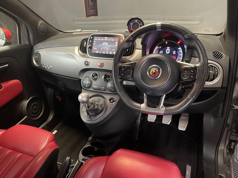 Ikonik Motors present this stunning Abarth 595, finished in sleek metallic grey with bold red accents that highlight its sporty character, featuring anniversary badges and details. This compact hot hatch delivers an exhilarating drive, combining sharp handling with punchy performance, while still being practical and easy to live with. With its distinctive styling, upgraded interior touches including a striking red leather interior with unmistakable Abarth attitude, this is the perfect choice for anyone wanting fun, flair, and everyday usability in one eye-catching package.