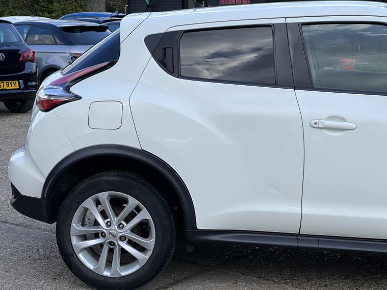 Vehicle Details:Nissan Juke 1.2 DIG-T Acenta finished in White (Manual), 67684 miles, only 4 previous owners. Only 4, 899, Every vehicle at Red Lion Motors is carefully selected to meet our high standards. For your peace of mind, were partnered with the AA and provide: a minimum of 6 months MOT, a 3-month warranty, free 12-month breakdown cover (available upon request) and a comprehensive 99-point inspection. Enjoy a hassle-free buying experience with the option to reserve your car online. We also offer delivery (subject to postcode) and convenient same-day video viewings if you cant visit us in person. This is a pre-owned vehicle and will show wear consistent with its age and mileage, including minor cosmetic and mechanical imperfections. Buyers are advised to inspect and test drive the vehicle or obtain an independent assessment prior to purchase. Consumer rights remain unaffected.
