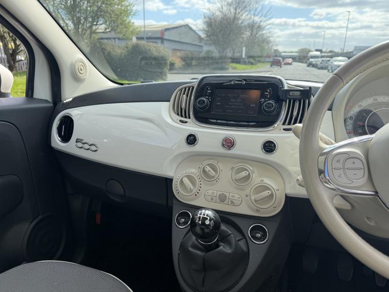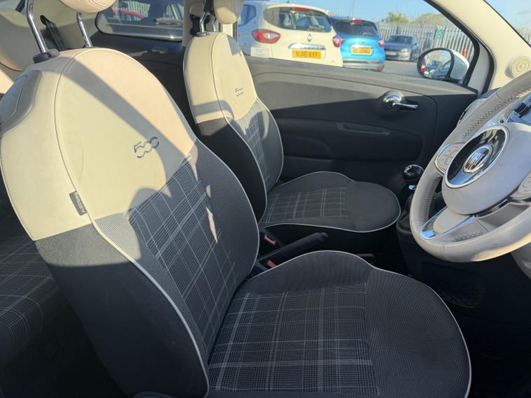 Fiat 500 1.2 Lounge Premium Spec, Iconic Design & Everyday Efficiency, This Fiat 500 1.2 Lounge is the perfect mix of style, comfort and low-cost motoring, offering a premium feel in a compact, city-friendly package. Powered by the reliable 1.2 petrol engine (69bhp), this model is well known for its low running costs, strong reliability and excellent fuel economy, typically achieving around 60mpg combined depending on driving style . Its smooth, easy to drive and ideal for both town and everyday commuting. The Lounge model sits higher in the range and brings a much more refined driving experience, with standout features including:, * Panoramic glass roof creating a bright, airy cabin, * Touchscreen infotainment system with Bluetooth & DAB, * Alloy wheels, * Air conditioning, * Multifunction steering wheel, * USB connectivity, Inside, the Fiat 500 offers a comfortable, characterful interior with a high driving position and excellent visibility, making it incredibly easy to manoeuvre and park in tight spaces . On the road, it delivers a relaxed and effortless drive, perfectly suited to urban environments while still capable on longer journeys when needed. Its compact size and light steering (including city mode) make it one of the easiest cars to live with day-to-day . If youre looking for a car that offers:, Premium Lounge specification, Low insurance and running costs, Stylish, iconic design, Easy driving and parking, this Fiat 500 is an excellent choice.