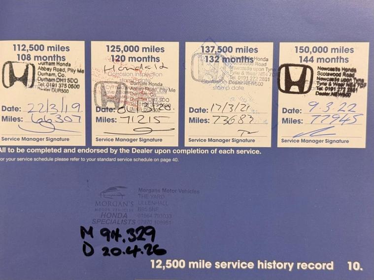 This well-presented Honda CR-V has covered just 94, 349 miles with 3 owners from new and has clearly been well maintained. It is supplied with its original service history booklet showing 13 service stamps, with the next service completed by ourselves prior to handover. Every vehicle at Morgans Motor Vehicles undergoes our MMV preparation process, including a pre-MOT check of lights and levels, fresh fully synthetic Valvoline 5W30 engine oil, new oil filter, air filter, fuel filter (diesel models) and pollen filter (where applicable). Our uploaded inspection report confirms quality tyres across both axles (7.2mm front / 5.2mm rear) and strong brakes (80% front / 80% rear remaining) with discs in healthy condition. At collection, we personally guide you through the V5 transfer and taxation process to ensure a smooth and straightforward handover. The vehicle is supplied with our 6-month MMV warranty (unlimited mileage) covering engine, gearbox, starter motor and alternator, with upgrade options available if desired. We operate strictly on an appointment-only basis and believe vehicles should be viewed and inspected in person prior to purchase. If you value careful preparation, transparency and specialist Honda knowledge, this CR-V will not disappoint. Please call Morgan your Honda specialist. Prepared for low-stress, everyday use. We do not recommend these vehicles for towing due to the additional mechanical and thermal load on ageing components. Use for towing can affect warranty coverage. At Morgans Motor Vehicles, we do things properly. * A relaxed, appointment only environment with no pressure, no pushy targets, * Specialist Honda knowledge with carefully selected cars, prepared to a high standard, * A premium, personal experience allowing proper time and proper attention. What you can expect from us:, * No rushed appointments, * Transparent history and clear communication, * AA Dealer Promise (where applicable):, * Annual service, * Full inspection report, * New MOT if less than 7 months remaining, 12 months AA roadside assistance