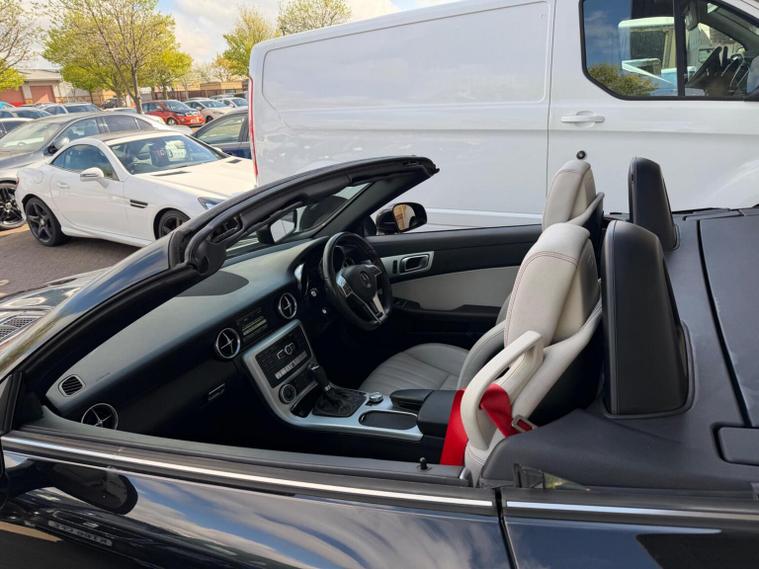 This 2015 Mercedes Benz SLK250 CDI AMG Sport is a rare find, having had only two owners from new. It boasts a powerful 2.1 litre diesel engine and comes in the desirable AMG Sport trim. For your convenience, it features Headlamp Assist for automatic activation of the headlights, a Bluetooth interface for hands free telephone calls, and air conditioning to keep you comfortable in all conditions. Experience impressive performance with this SLK, accelerating from 0 to 62 miles per hour in just 6.7 seconds, a testament to its dynamic capabilities. This model also offers a surprisingly large boot space, making it a practical choice for everyday use and longer journeys alike. These features combined demonstrate the superior quality and thoughtful design of this Mercedes Benz SLK.