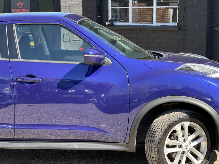 Vehicle Details:Nissan Juke 1.2 DIG-T Acenta finished in Blue (Manual), 26410 miles, only - previous owner. Only 6, 999, Every vehicle at Red Lion Motors is carefully selected to meet our high standards. For your peace of mind, were partnered with the AA and provide: a minimum of 6 months MOT, a 3-month warranty, free 12-month breakdown cover (available upon request) and a comprehensive 99-point inspection. Enjoy a hassle-free buying experience with the option to reserve your car online. We also offer delivery (subject to postcode) and convenient same-day video viewings if you cant visit us in person. This is a pre-owned vehicle and will show wear consistent with its age and mileage, including minor cosmetic and mechanical imperfections. Buyers are advised to inspect and test drive the vehicle or obtain an independent assessment prior to purchase. Consumer rights remain unaffected.