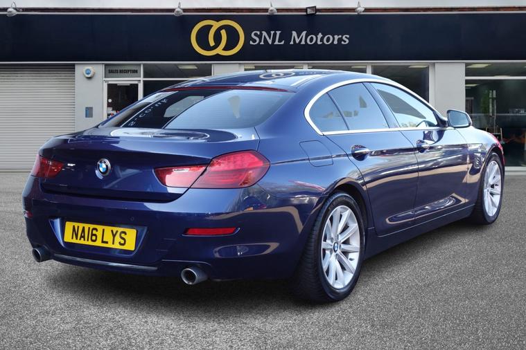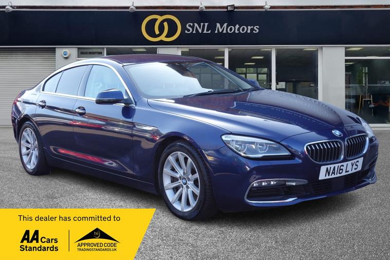 Here we have up for sale is a 2016 BMW 6 Series Gran Coupe 640d SE. This Euro 6 - ULEZ compliant model boasts a powerful 3.0L diesel engine, delivering an impressive 0-62mph acceleration in a mere 5.4 seconds. The SE trim level ensures a refined driving experience, complemented by features such as LED headlights for enhanced visibility, automatic climate control with two zone settings, and automatic headlight activation with a rain sensor. For convenience, it includes electric front seat adjustment with driver memory and enhanced Bluetooth telephone preparation with wireless charging. It comes with a full BMW service history. The exceptional performance and thoughtful features of this BMW 6 Series Gran Coupe set it apart. Its swift acceleration demonstrates a dynamic capability that surpasses many vehicles in its class. The inclusion of LED headlights, automatic climate control, and the convenience of electric seats with memory function all contribute to a superior level of comfort and practicality. This combination of low ownership, minimal mileage for its age, and desirable features makes this 640d SE a standout choice. All vehicles are thoroughly checked before sale and sold with a fresh 12 months MOT and service. 3 months comprehensive warranty and 12 months AA breakdown cover is included as standard. Extended warranty and Finance options available. Part exchange welcome. Please contact SNL Motors for further information and to arrange a viewing.