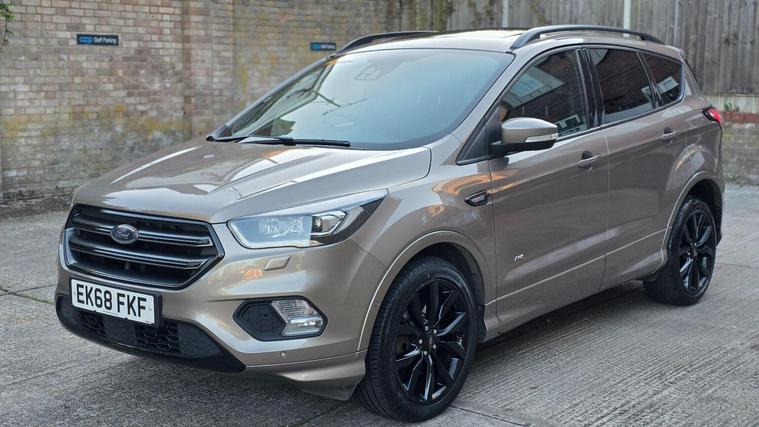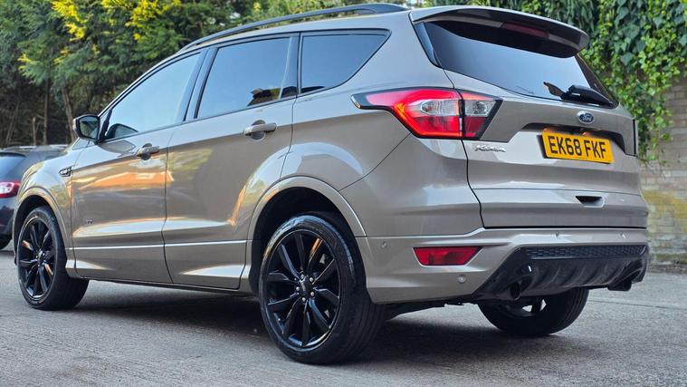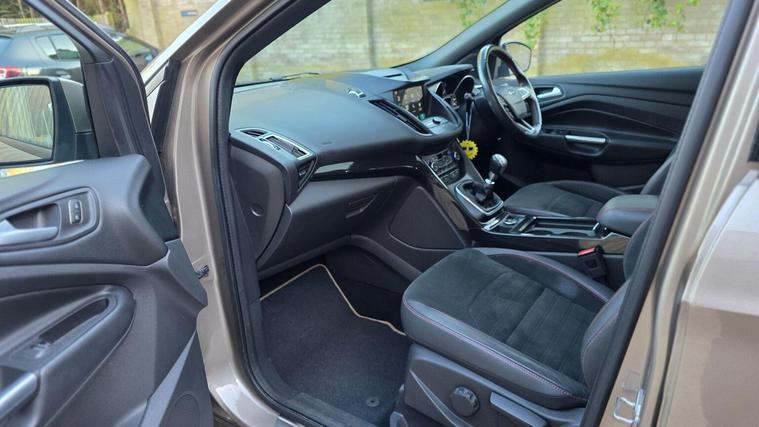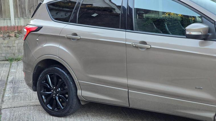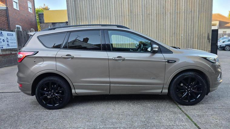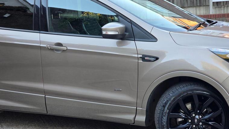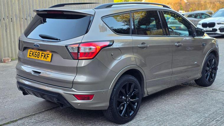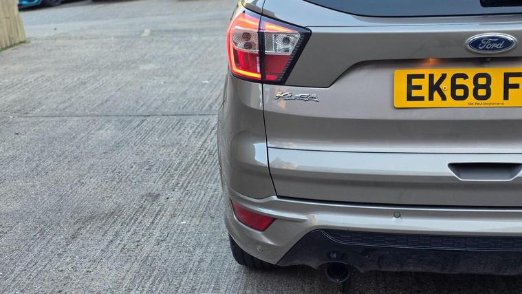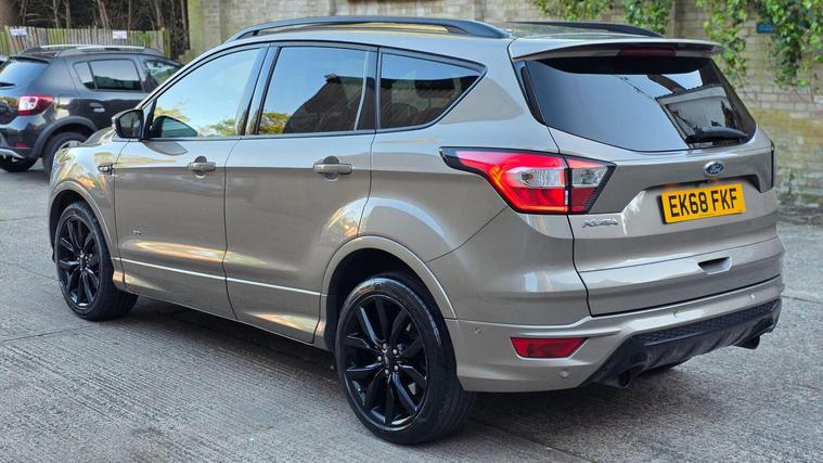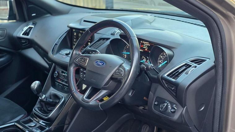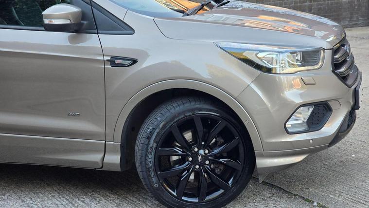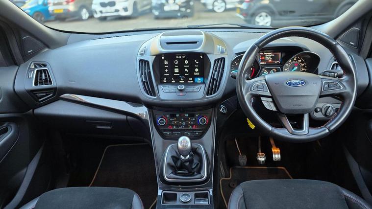 This 2018 Ford Kuga TDCi ST-Line X offers a clear vehicle history and a recent service at 73, 500 miles, providing confidence in its provenance. This Four Wheel Drive model is powered by a 2.0L Diesel engine and meets Euro 6 emissions standards. It comes with a 3 month warranty for your peace of mind. The ST-Line X trim level is enhanced with the ST-Line Style Pack, featuring striking Xenon headlights and a large rear spoiler for a sporty look. Inside, youll find a Premium Ford DAB Navigation System with Ford SYNC3, offering Bluetooth connectivity and parking assistance with a rear camera. The Driver Assistance Pack includes BLIS Blind Spot Assistance, a valuable feature that helps you stay aware of your surroundings, making this Kuga a well equipped and capable choice.