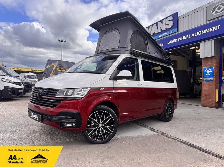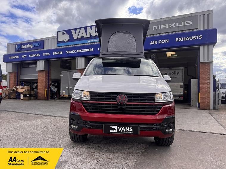 X5 CAMPERS IN BUILD!!!PEARL CANDY WHITE / FORTANA REDKey Highlights:2 TONE FINISH - BRAND NEW CONVERSION - 5 YEAR ROOF WARRANTY - 1 YEAR MECHANICAL WARRANTY - 2 YEAR INTERNAL FURNITURE WARRANTY - DIESEL HEATER - GLAZED TAILGATE - RIB BED - LEATHER THROUGHOUT - BODY KIT & ALLOYS - OPENING CANVAS POP TOP (SCENIC VIEW) -- 5 LEATHER SEATS.4 BERTH 2 TONE TAILGATE CAMPER CAMPER VAN IDEAL LUXURY CAMPER THAT CAN BE USED FOR ALL PURPOSES. STAYCATION & FAMILY CAR - Volkswagen Transporter T6.1 SWB - CALL US TODAY FOR A VIRTUAL/PHYSICAL APPOINTMENT OR PERSONAL VIDEO.Camper Spec - 4 Berth with Diesel Heater, SKYLINE Scenic Canvass Pop Up Roof With Roof Bed and Opening Scenic Canvas (Includes 5 Year Warranty), Fully Glazed Side Privacy Windows x2 Sliding, RIB BED, Double Swivel Bench Seat, Full Leather, Complete Carpet Lining and Insulation, Leisure Battery, 140amp Split B2B Charger Relay, Grey Wood Effect Flooring, 4 LED Spot Lights + 2 Strip Lights Above Kitchen Units, Power Management System, Full Motorhome Approved Hibitation & Gas Check, Including 240v Battery Charger, External Hook-Up, x2 240v Sockets, 12v Power Outlet, USB Ports, SMEV 9222S Twin Gas Burning Hobs Including Tap and Sink, Gas Locker, Removable Water Tank, 50 Litre Dometic Fridge, Crash Tested RIB BED.PCP & 10 YEAR HP FINANCE AVAILABLE - AS LOW AS 9.9% APR - SPEAK TO US FOR YOUR PERSONAL FINANCE QUOTATION.While every effort has been made to ensure the accuracy of this information, however errors may 'occur, please check with a Salesperson.