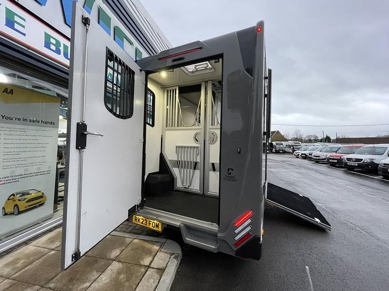 For sale is this fantastic Renault Master Theault Horsebox, perfect for transporting your beloved horses in style and comfort. This horsebox has had only one owner and is powered by a reliable 2.3 diesel engine, delivering 161 BHP for smooth and efficient performance.The exterior of this horsebox is finished in a sleek grey colour, complemented by a comfortable cloth interior. With only 40, 207 miles on the clock and a 2023 registration, this vehicle is practically brand new and ready for all your equestrian adventures.Equipped with a manual transmission, this Renault Master Theault Horsebox offers a top speed of 99 mph and an impressive 21.6 MPG fuel efficiency. With four doors for easy access, this horsebox is designed for convenience and ease of use.Don't miss out on this opportunity to own a top-of-the-line horsebox with optional specifications available to suit your specific needs. Contact us today to arrange a viewing and test drive of this Renault Master Theault Horsebox.