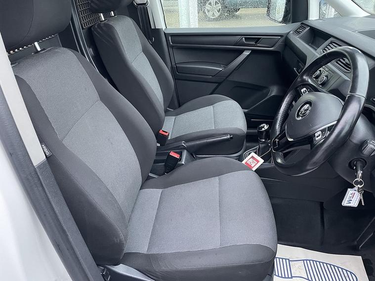 This 2018 Volkswagen Caddy 2.0 TDI C20 Startline Panel Van in classic white is the perfect addition to your fleet. With only one previous owner, this diesel manual van has a mileage of 82278 and comes with a range of standard features including ABS, airbags, electric windows, and more.Powered by a 2.0 engine with 101 BHP, this van has a top speed of 107 and an impressive fuel economy of 60.1 MPG. The manual transmission and 5 doors make it easy to navigate through city streets and highways alike.The interior is designed for comfort and convenience, with features such as a DAB radio, adjustable seats, and plenty of storage options. The exterior boasts a sleek design with black accents and steel wheels.Don't miss out on this versatile and reliable Volkswagen Caddy. Contact us today to schedule a test drive and experience the quality for yourself.