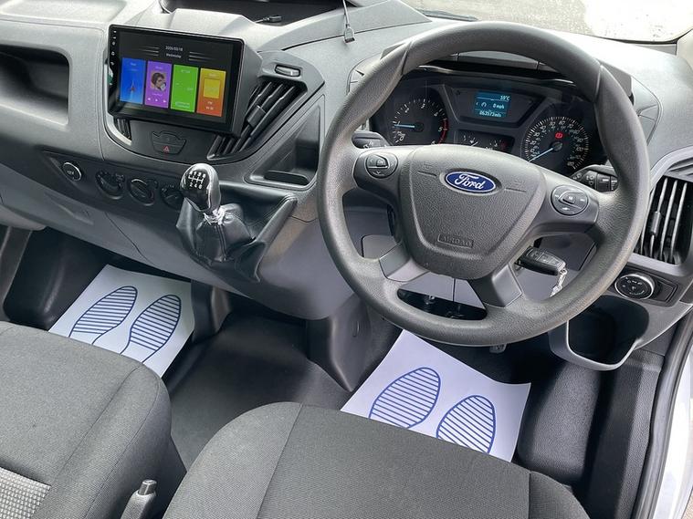 Standard features include Bluetooth hands-free phone connectivity, Ford Eco Mode driver information system, and a full-width steel bulkhead with load-through facility. The van also comes with a sliding side load door and step for easy access to the cargo area.