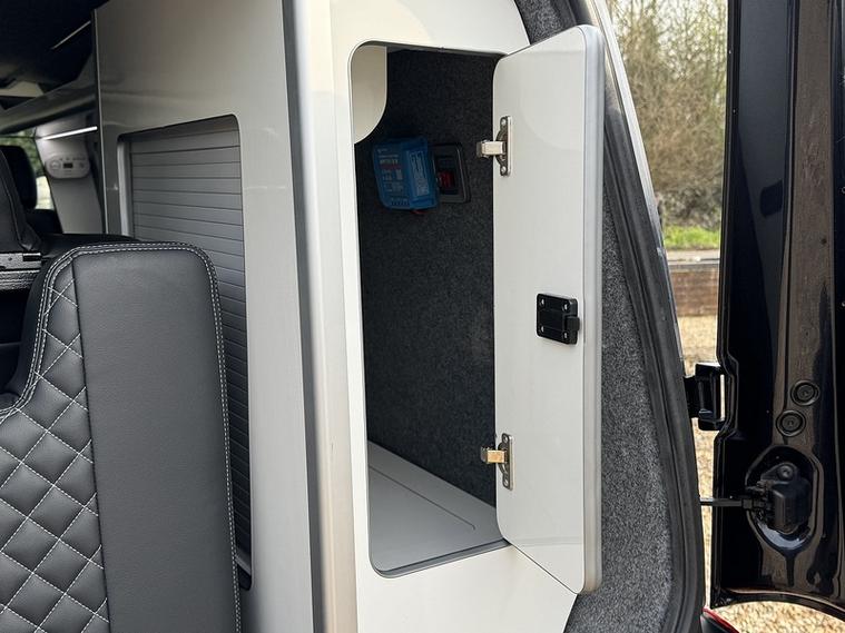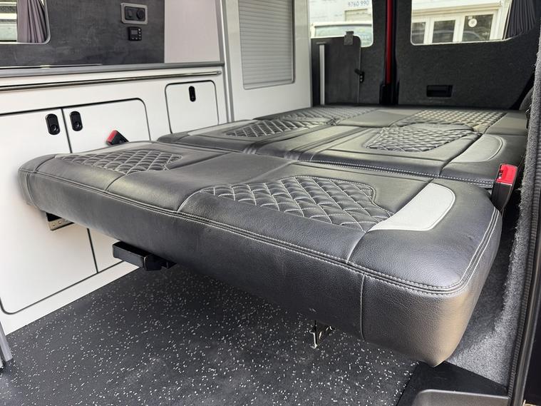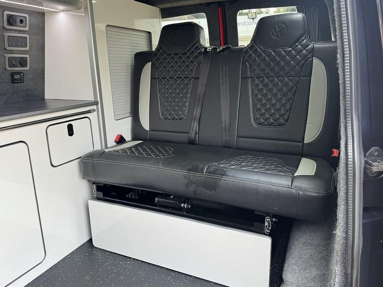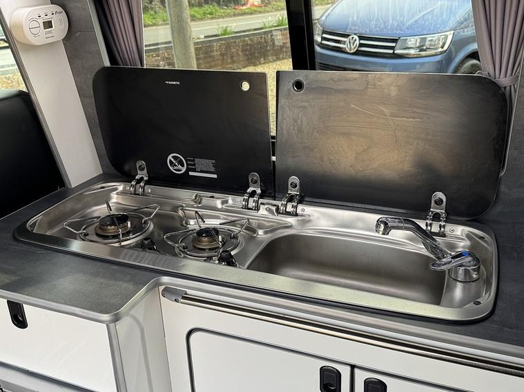 Specification: M1 tested Reclining Rock and Roll 2 seat bed, M1 tested Pop top roof, Diesel heater, Solar panel, Gas and Electrical Certified sign off, Secure gas locker bottle storage for Blue 903 or 907, Twin gas hobs, Sink with 12v water pump and water storage, Mains Electrical hook up, Leisure battery with charging from mains hook up and vehicle battery, 2x 240v plug sockets when on hook up. LED lighting, 12v Fridge/Freezer, Curtains, Awning rail, Foldable table, Air conditioning, Bluetooth with audio streaming, Stop/start, USB connect, Sun protection rear windows, Apple Pioneer Carplay / Android auto, Rear parking sensors, 16" alloys.