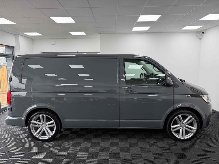We Are Pleased To Offer This 2021 VW Transporter T30 Highline. Specification Includes: 1 Year Warranty Only £200 - VW Service History - Serviced at 27k 37k 47k 66k - New Navis Wheel & Eiback Lowering Springs - Reverse Camera - Heated Front Windscreen - Air Conditioning - Apple & Android CarPlay - Front & Rear Parking Sensors - DAB Radio - Bluetooth Telephone & Audio - Cruise Control - MOT Until March 2027.