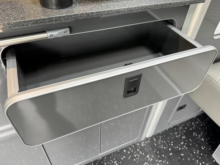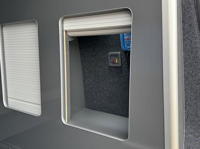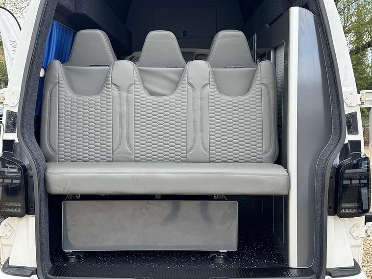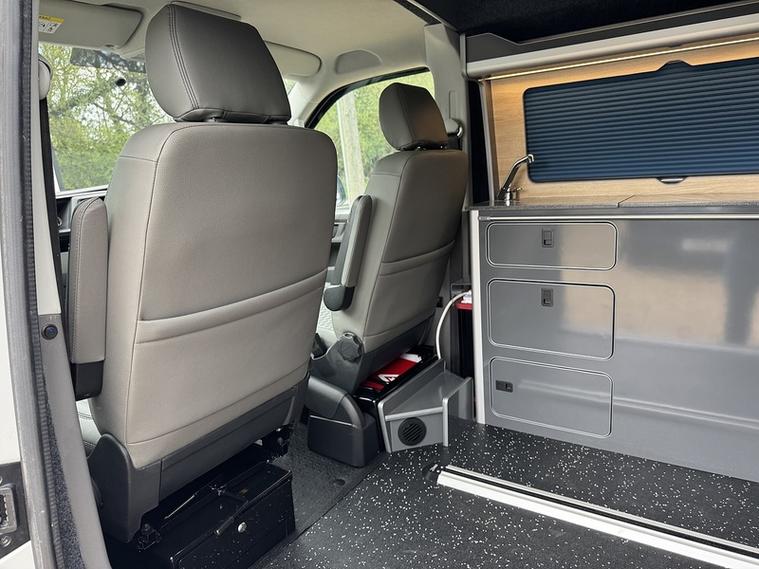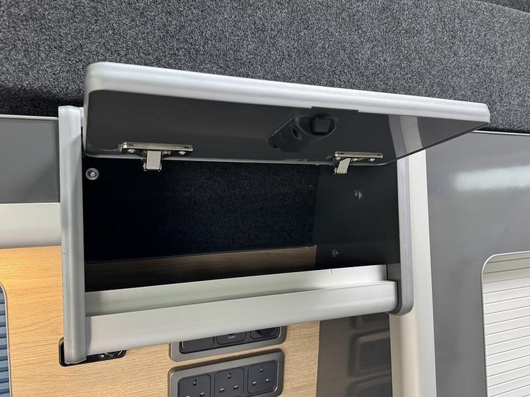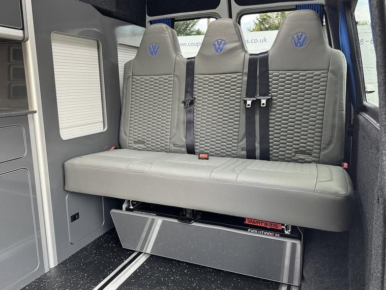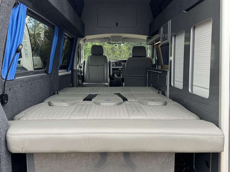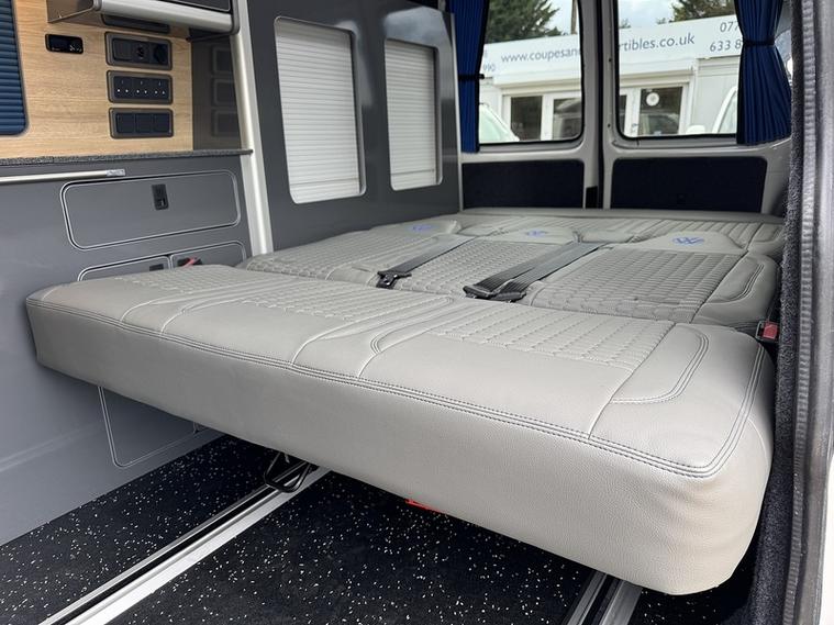 Specification: 3 Seat rail bed with under shelf, Auto term Diesel heater with comfort controller, 200w Solar panel, 150ah Lithium battery, 1600w Inverter, Top loading fridge, 70amp Battery to battery cahrger with reverse charging and jump start assist, Mains hook up charger, Sink with pump, 2 x 240v Sockets, Victron Solar contoller, Maxxfan with remote, Black out curtains, Blind over kitchen, USB/12V point, Swivel Passenger seat with lockable safe, Sound deadoned / Insulated throughout, 2 x Sliding top windows, Skylight / Vent, 18" Alloys, Side bars, LED Style front and rear headlights, LED side repeaters, Cruise control with front assist, Rear parking sensors, Front foglights, Wind deflectors, Apple Carplay / Android auto, DAB radio, Multi-function steering wheel, Start/Stop, Bluetooth with music streaming.