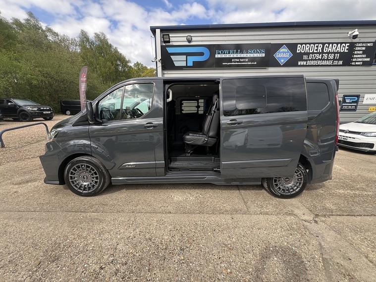 Ford Transit Custom 320 MS-RT Crew Van Double Cab, 6 Seater Crew van , 170 BHP , 34, 537 Miles, 2023, LWB , Automatic , 1 Owner, Full Service History, Bluetooth, DAB, Electric Windows, Electric MS-RT - RARE COLOUR BLACK/GERY SVO PAINT , Folding Mirrors, USB, Ply Lined, Front & Rear Parking Sensors, Barn Doors, Side Loading Door, Heated Front Seats, Heated Screen, Cruise Control, Apple Car Play/Android Auto, Fully MS-RT Body Kit , 18inch MS-RT Alloys, 2 Keys