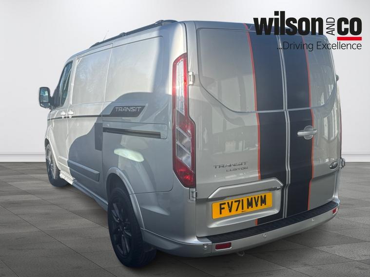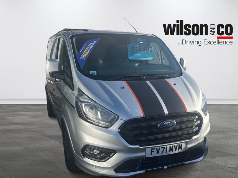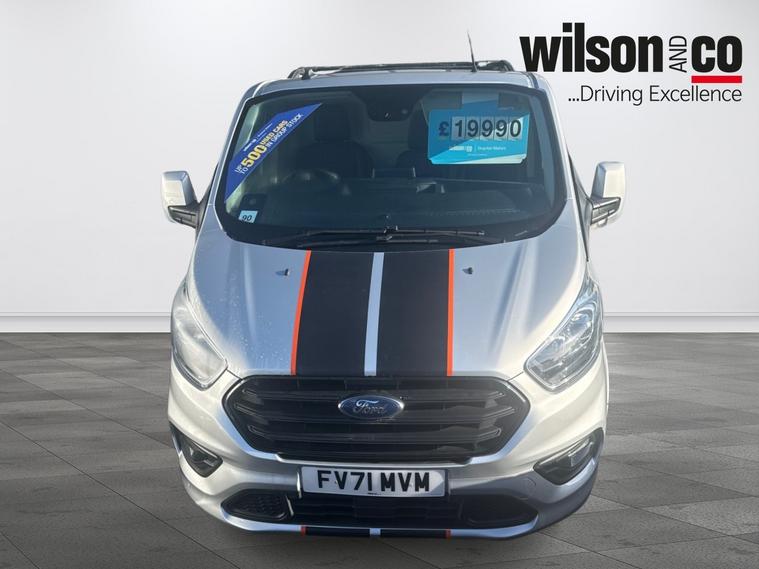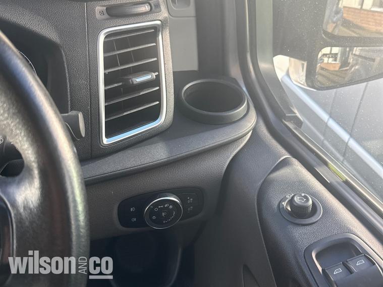 This Ford Transit Custom available from Wilson and Co Bolton is finished in Silver and features a 2.0-litre Diesel engine with a 6-speed automatic gearbox. The interior includes air conditioning, rain-sensitive wipers, and automatic headlights, with enhanced visibility thanks to interior illumination. Safety features include emergency brake assistance and tyre pressure monitoring, while practicality is boosted with a spare wheel. The exterior is complemented by alloy wheels.