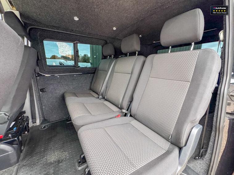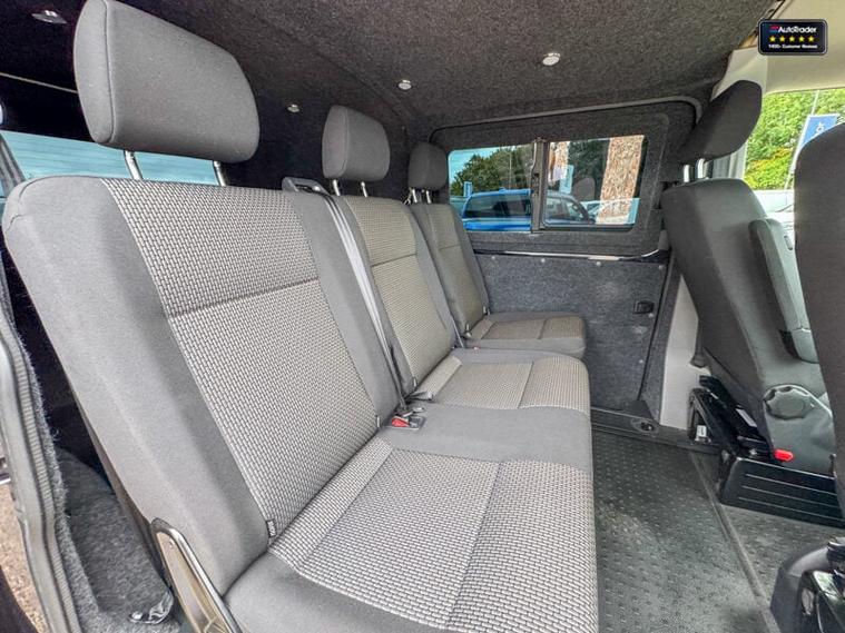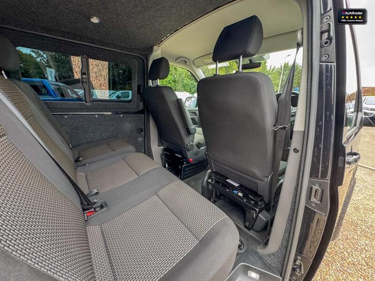 This sharp-looking black Volkswagen Transporter Crew Cab is ready to do business. It’s a short wheelbase T30 Highline model with a punchy 2.0 TDI engine, manual gearbox and all the usual refinements you'd expect from the Kombi Highline range. With factory alloys, air conditioning and parking sensors, it's built for comfort as much as practicality. The Euro 6 engine keeps things clean and compliant wherever you're working, and the L1H1 setup means it’s just the right size for urban jobs without compromising on load or passenger space. You're getting a versatile window van that's ideal for trade or family life, from the UK's best, largest and most trusted used vans hypermarket. At Anchor Vans, we’ve recently been named MotorTrader Used Van Dealer of the Year 2025, MotorTrader UK Car Dealership of the Year, and many more – and with a 5/5 star rating on Trustpilot, our customers agree. Give us a ring on 01183442202 to arrange your viewing or ask any questions. We offer flexible delivery options, our trusted Anchor Care Packs, and every van comes backed by our customer guarantee – because it’s not just about the van, it’s the service that comes with it.