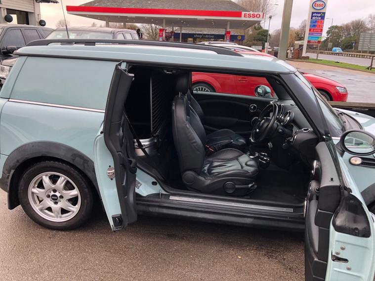 This 2013 rare VAT free low mileage Mini Cooper Clubvan 1.6D comes complete with a personalised registration number and a full service history having been serviced at 8000, 17000, 33000, 43000, 62000, 66000, 69000, 71000, 74000, 76000 miles. Finished in sought after Ice blue with full black leather interior it is in superb condition inside & out and drives very well. specification includes climate control, automatic lights, rain sensing wipers, radio CD, DAB radio, bluetooth, aux point cargo divider and floor mat in the rear, rear parking sensors, twin opening rear doors, front fogs, 15'' alloy wheels, and remote central locking with 2 keys. All cars are Hpi checked and come with a national warranty. See more at dealer's website We are open 7 days a week and do not charge admin fees.