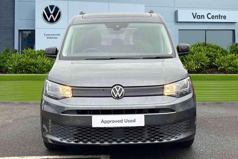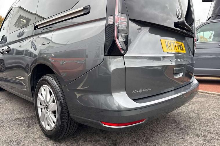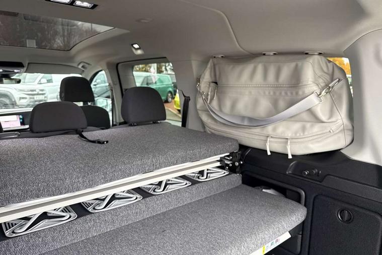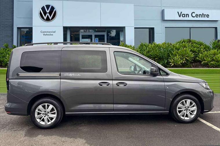Decorative inserts birch vein, Anti theft alarm system with interior monitoring, backup horn and towing protection, DAB Digital radio, 3-point seat belts in front with pretensioner and height adjustment, 3x3 point rear seatbelts, Anti-lock braking system (ABS), Automatic post collision braking system, Autonomous emergency braking front assist with pedestrian and cyclist monitoring, Brake assist, Curtain airbag for outer seats in rear, Direct tyre pressure monitoring system, Driver and front passenger airbag with front passenger airbag deactivation, Electric parking brake with auto hold function, Electronic brake force distribution, Engine drag torque control, ESP, First aid kit with warning triangle and safety vest, Front centre airbag, Power operated child safety locks, Seat belt reminder, Side and curtain airbag for driver and front passenger, Traction control system (TCS), 3rd brake light, Automatic hazard lights activation under emergency braking, Automatic headlight control system, Black painted exterior mirror housings, Body colour bumpers, Body colour door handles, Electric front windows, Fixed side window in load/passenger compartment, LED tailgate surround lighting, Rain sensor, Rear window wiper and washer system with intermittent control, Silver sliding door rail, Twin near side and off side sliding doors, Windscreen wiper with variable intermittent delay and wash wipe system, 12V outlet with cigarette lighter and ashtray, 12V socket in passenger compartment, 2 folding chairs and 1 folding table including bag for storing under the bed, 3 seat bench in 2nd row (fold/flip/removable), 5 standard interior lights in passenger compartment, California lettering on the sliding doors at waistline level and on the tailgate, bottom left, Carpet floor covering in cab, Carpet floor covering in passenger compartment, Double grid cloth upholstery, Electrically controlled heating system, Folding comfort bed with dished springs (1980mm x 1070mm), Folding table on front seat backrests, Front head restraints, Integrated gas bottle, cooker, cutlery drawer and storage in mini kitchen, Interior light in headlining, LED reading light in passenger compartment, Lockable glove compartment door with light, Magnetic window blinds for all windows, Manual adjustable lumbar support in front seats, Manual front seats with height adjustment, Multifunction steering wheel, Plastic door trim panel and fabric side trim panel, Plastic gearshift knob/handle, Pull-out kitchenette in the rear - single burner, Reach and rake adjustable steering column, Rear head restraints, Removable storage packs in rear side window, Single front passenger seat, Storage drawers under front seats, Sun visors with mirror and airbag label on front passenger, Ventilation grille with mosquito screen for driver and front passenger doors, Driver alert system, eCall emergency call system, Lane keeping system, Multi function display, On board computer, Service interval indicator, Start/stop system with regenerative braking, Tailgate with heated window, We connect plus preparation, 180A alternator, Electronic differential lock,