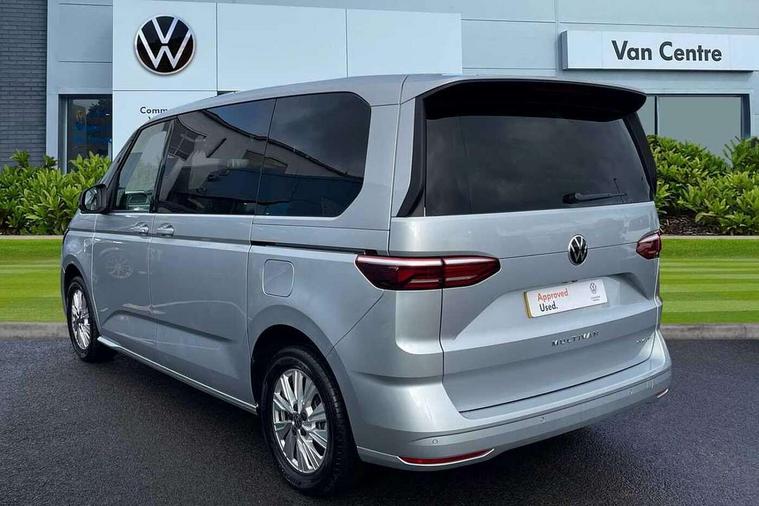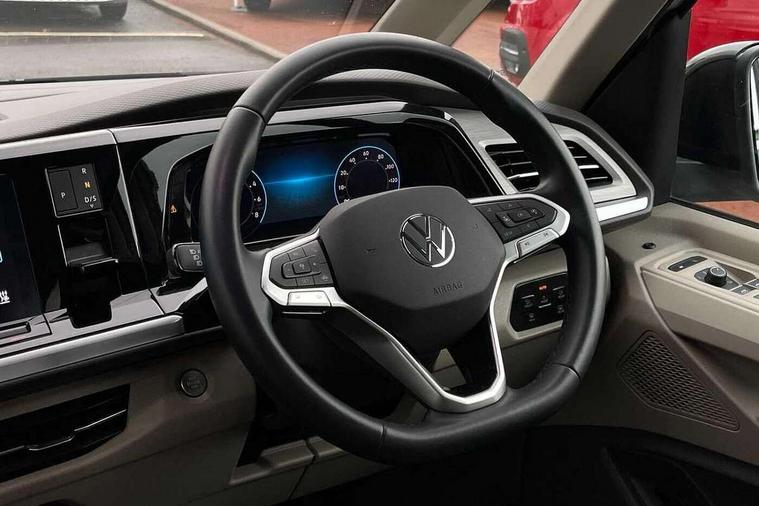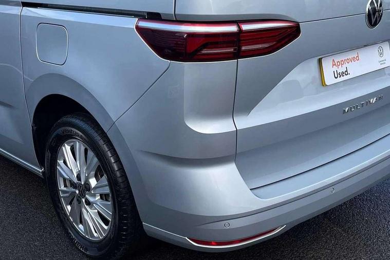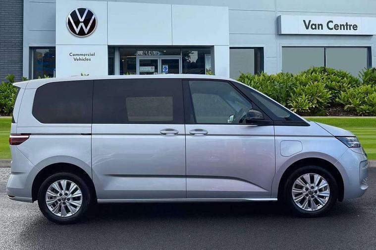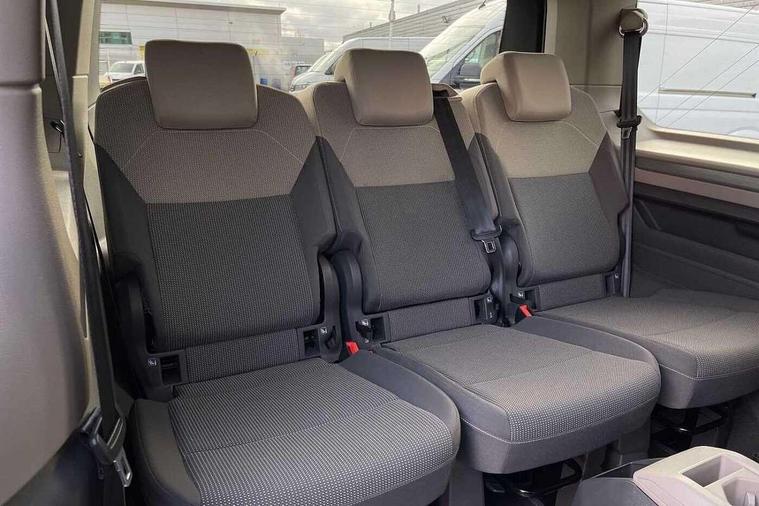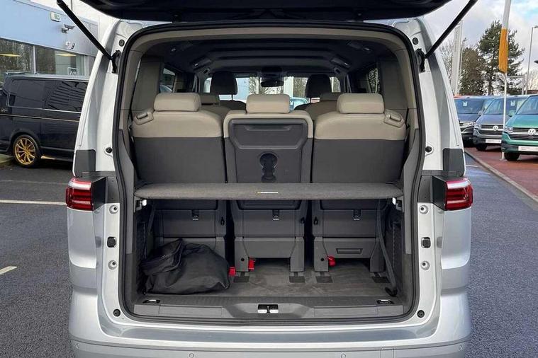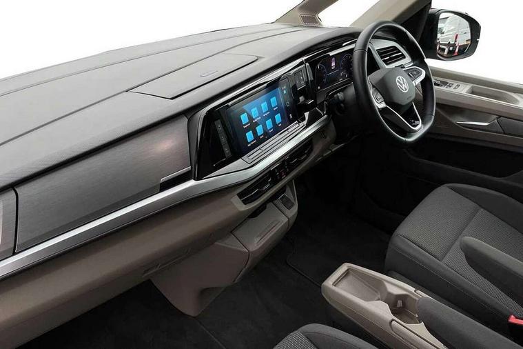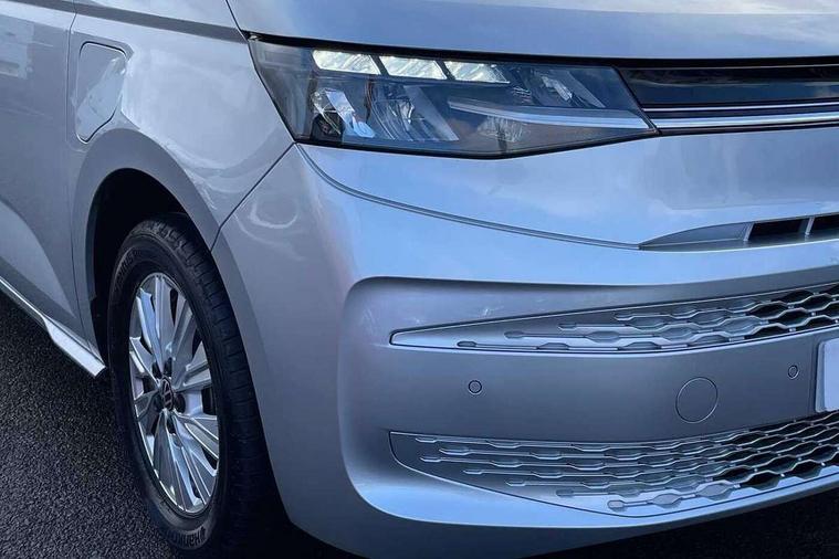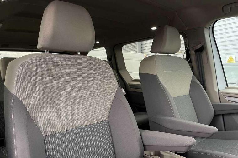 Dark silver brushed decorative inserts, Anti theft alarm system with interior monitoring in cab, backup horn and towing protection, Central locking system with keyless start and safelock, 2 USB-C ports in front and 4 USB-C ports in passenger compartment, Digital radio reception (DAB+), 3x3 point rear seat belts, ABS, Autonomous emergency braking front assist with pedestrian and cyclist monitoring, Driver and front passenger airbag with front passenger airbag deactivation, Electronic stability control (ESC) and Electromechanical brake booster, First aid kit with warning triangle and safety vest, Rear door child safety locks, Side and curtain airbags for driver and front passenger, curtain airbags for outer seats in rear, centre airbag in front, Traction control, Tyre pressure monitoring system, Automatic headlight control with welcome home lights, Body coloured exterior door handles, Break away auto dimming rear view interior mirror, Dynamic headlight range control (self adjusting), Front fog lights, Glossy black painted radiator grille with 2 chrome trims, High gloss black exterior mirror housing, Interior noise reduction measures, LED 3rd brake lamp, LED main headlamps with LED separate daytime running light, LED rear combination lamps, Rain sensor, Rear wiper, Sliding door on left/right with power latching, 7 single seats removable/movable, Carpet mats in cab, Front and rear head restraints, Illumination lockable glovebox compartment, Load compartment partition to 20kg with bag hooks and luggage net, Luggage compartment lid power latching with unlatching from inside, Multifunction leather steering wheel with tiptronic, Reinforced carpet floor covering in passenger compartment, Removable armrests for front seats with power adjustable lumbar support and folding table for 2nd row passenger seats, Removable armrests in 2nd row passenger seats, Slidable multifunction table/centre console with 3 cup holders, Storage compartment under the 2nd and 3rd row seat and two waste bins, Sun visors with illuminated vanity mirror, ticket holder on driver side with airbag warning label on sunvisor and B-pillar, Surround lighting in door area, Adaptive cruise control, App connect including wireless Apple CarPlay, Digital Cockpit Pro with 10.25" Display, Driver alert system, Dynamic road sign display, eCall emergency system, Lane keeping system Lane Assist, Mobile phone interface, PAS, Tailgate, Voice control system including Alexa web app, We connect preparation, Charging cable Mode 3 Type 2 / 3 (16A),