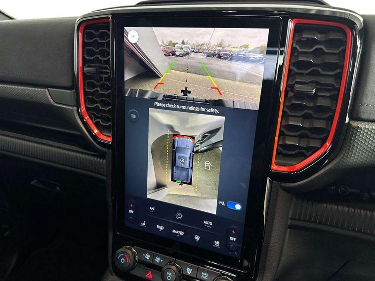360 degree camera, A-pillar assist handle, Advanced automated park system, Blind spot monitoring with trailering, Electric power assisted steering, Electronic automatic gearshift, Front parking aid, Full TFT/LCD instrument cluster, Intelligent speed assistant, Lane changing warning and aid, Passenger side roof mounted grab handle, Pro trailer backup assist, Reverse brake assist, Reverse parking aid, Speed sign recognition, Wireless charging pad, 360 lighting, Accent colour HD front bumper, Acoustic laminated windscreen, Assisted conventional tailgate, Auto high headlamp, Automatic headlamp levelling, Automatic headlights, Black front fender grille, Black grille, Body colour exterior mirrors, Body coloured door handles, Cast alloy side step, Daytime running lights, Dual power heated fold back door mirror with pud lamps, E-marked glass, Electric rear window defroster, Electric windshield defroster, Electrochromic interior mirror, Extra large wheelarch flares, Fog lamp bezel, Front splash guard, Front towing hooks, Fuel tank guard, High mounted stop lamp, LED Front fog lamp, Level 3 matrix headlamps, Level 3 Taillamps, Manual liftgate, Metal underbody protection, Non locking capless fuel fill, Power front windows with one touch up/down, Power rear windows, Privacy glass, Rain sensitive windshield wipers, Rear bumper step accent color, Rear fog lamps, Rear splash guard, Rear towing hooks, Self coloured decklid handles, Tempered glass front window, Under hood engine cover, 12v socket in bedliner, Cargo light, Console with double lid, Driver and passenger sunvisor with mirror, Dual control system - Electronic air temperature control (EATC), Fresh air heater, Front premium floor mats, Heated steering wheel, High series air register, LED ambient interior lighting, Load box edge protectors, Locking glove box lid, Non woven carpet, Overhead console with dome lamps, Pollen filter, Pull out cup holder, Radio noise supression, Rear floor ducts, Roof storage for driver sunglasses, Steering wheel with multimedia controls, Super matte leather upholstery, Tie down hooks, Washer tank level warn lamp, Front seat pack 9 - Ranger, Functional upgrade pack 3 - Ranger, Heavy duty terrain pack - Ranger, ICE feature pack 106 - Ranger, Interior trim pack 15 - Ranger, Lighting package level B - Ranger, Rear seat pack 15 - Ranger, Technology package 73 - Ranger, Trailer tow pack - Ranger, Wheel pack 19 - Ranger, Breakdown warning triangle, Child proof rear door locks, Driver and passenger airbag, Dual note electric horn, 2 Remote control unit - key fob, Power door dead locks, Stolen vehicle recovery system, Tailgate lock, Thatcham alarm system, Thatcham security system, 400W Power inverter, ABS/ESP brakes with electronic brake boost, Battery management system, Cabin socket and loadbox socket, Collision mitigation system 2, Electric parking brake, Electrical outlet 3, Engine start/stop system, Front and rear disc brakes, Locking front axle, Locking rear axle, Performance suspension, Post impact braking, Rear power point plug, Spare tire lock,