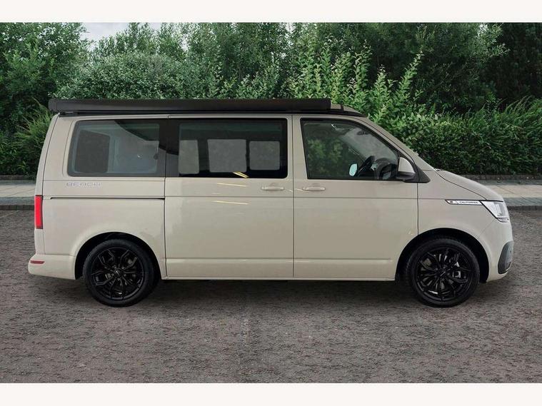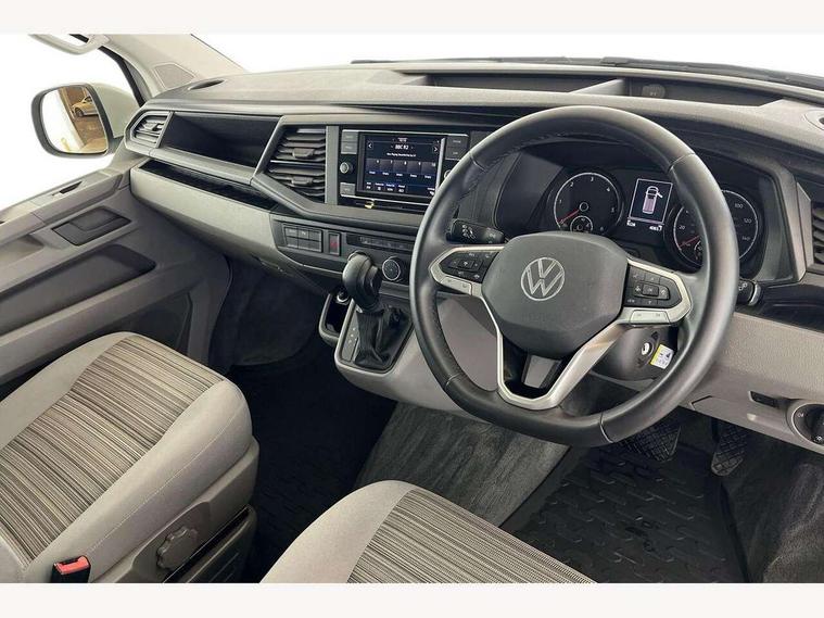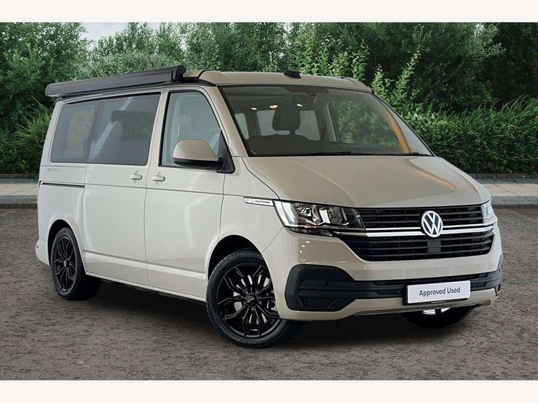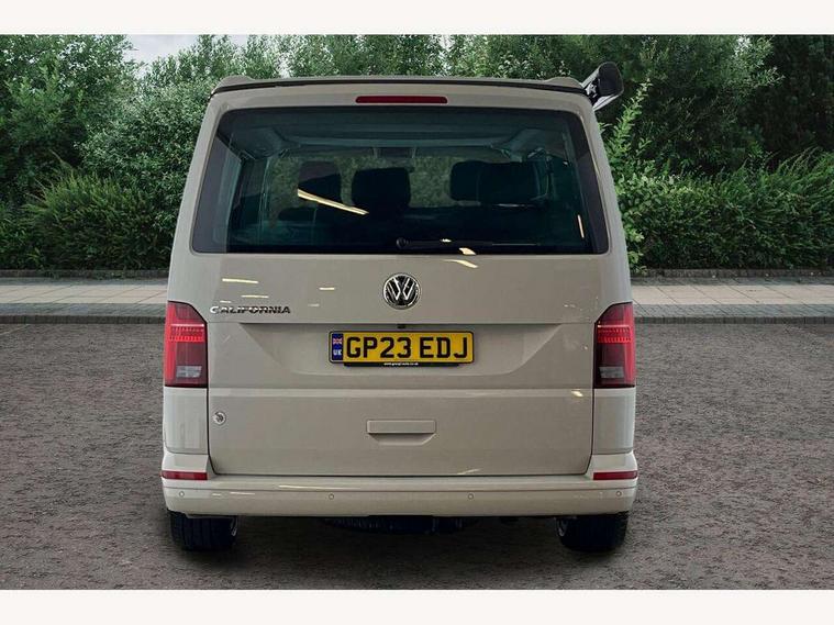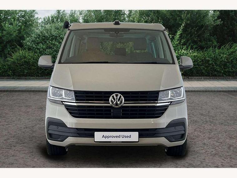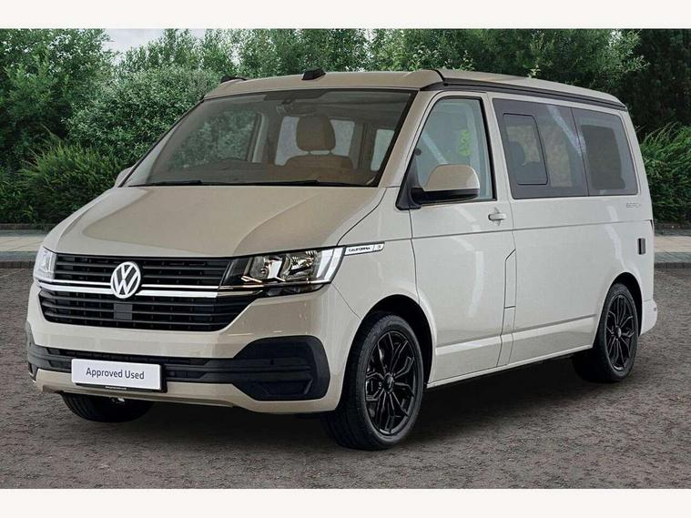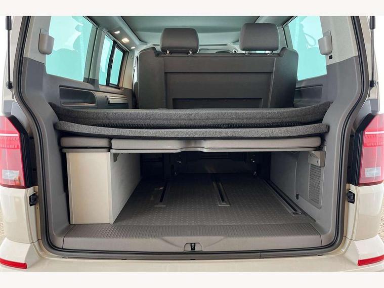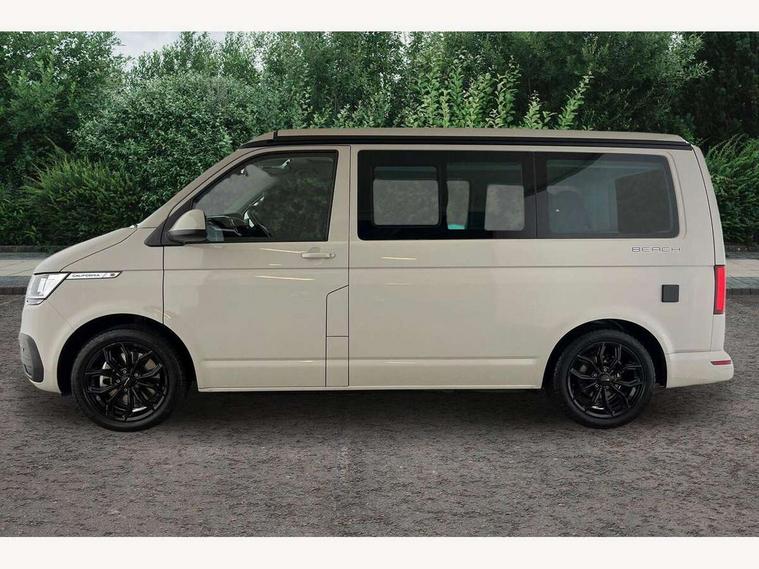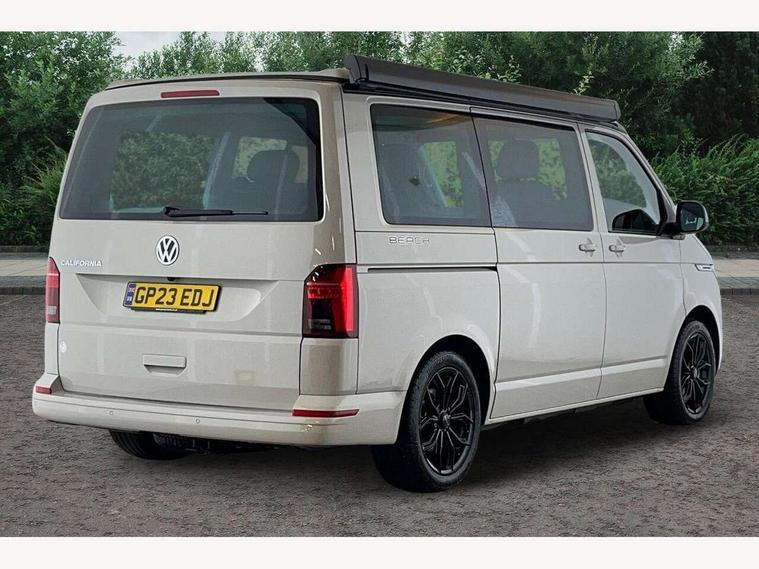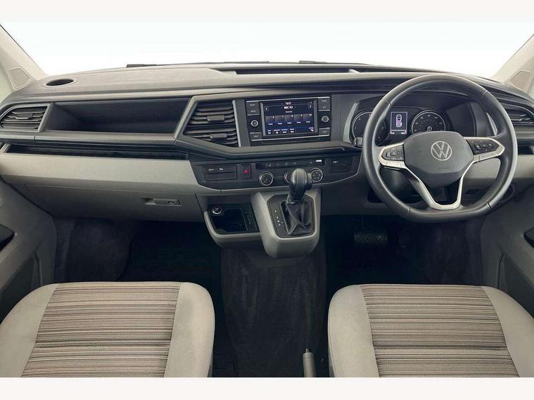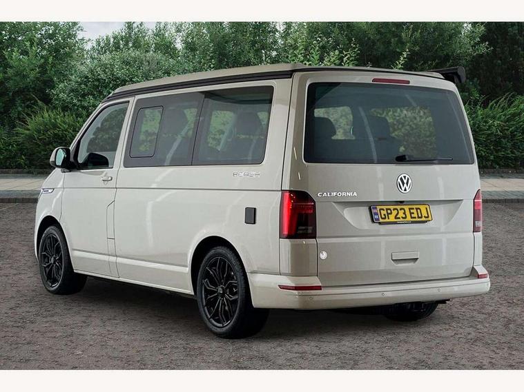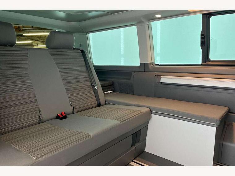 Adaptive cruise control with speed limiter and city emergency braking, Bluetooth handsfree system, Cross wind assist, Driver alert system, eCall emergency system, Mobile phone interface, Multifunction display premium with color display, Service interval indicator, Speed limiter, Start/stop system with regenerative braking, Tailgate latch without unlocking function from inside, Tailgate with window aperture, Volkswagen app connect, Without lane change system side Assist, Without voice control, Without washerfluid level indicator and without heated washer nozzles, 17 inch chassis with 17 inch disc brakes in front and 16 inch disc brake in rear, 2 (type C) USB interfaces in dashboard, 6 speakers, Composition colour radio with 6.5 inch touchscreen, Digital radio reception (DAB+), Regional code ECE for radio, SD card slot, Additional dust seals on the outside, Body colour bumpers, Body coloured door handles, Body coloured door mirrors, California badge on the front wing and on the rear, California nameplate on the fender and on the rear, Fixed front and rear side windows in load/passenger compartment on driver side, Headlight range control, High level 3rd brake light, Left convex exterior mirror, Mounting rails on the roof (preparation for movable roof rack), Radiator grille with 2 chrome trims, Rear heated window with window wiper and washer system, Red LED rear combination lamps, Right convex exterior mirror, 12V outlets, 12V outlets in dashboard X 2, 2 waste bins for door storage compartments in cab, 3 drawers under 3 seater bench in passenger compartment, 230V inverter with socket on driver seat, 3 spoke leather wrapped multifunction steering wheel, 3-seater bench (movable) with reclining seat mechanism, multi-flex board with padding, 3 drawers, Allergen filter, Armrest for both cab seats, Camper control unit, Camping table for inside/outside in sliding door and 2 folding chairs in tailgate, Child safety net, Child seat anchors ISOFIX and top tether for Multivan/California in 2nd to 4th row of seats, Dimmable illuminated instruments, Electromechanical speed sensitive power steering, height and longitudinally adjustable steering column, Front head restraints, Glove compartment with illumination, Grab handles on A pillar for access, on driver and front passenger side, Illuminated steps in passenger/load compartment, Illuminated sun visors with mirror and airbag label on front passenger sun visor, Interior loading edge protection in plastic, Jack and tool kit, Manually adjustable lumbar supports for left and right single seat in the 1st row of seats, Multi-flex board with padding in luggage compartment, Plastic floor covering in passenger/load compartment, Rear head restraints, Refrigerant R1234yf, Roof bed (2000 x 1200 mm) with spring plates and mattress, Soft folding grab handles on roof frame, Special interior noise suppression measures, Special sound deadening measures in cab and passenger compartment, Step illumination with California lettering, Swivel seat on the left, with lumbar support in 1st row of seats, Swivel seat on the right, with lumbar support in 1st row of seats, Without floor mats, Without height adjustment for driver and single passenger seats, Without insulating box and without refrigerated glove compartment, Smokers pack - California, 3x3 point rear seat belts, Airbags - Drivers and front passengers side and curtain airbags, Driver/Front Passenger airbags, Electronic stability control, ABS, ASR, EDL, brake assist system, Height adjustable 3 point seat belts on outer seats in cab with electric pretensioners, Hill start assist, Passenger airbag deactivation system, Power operated child safety locks, Single tone horn, Warning buzzer and light for driver seat belt not fastened, Anti theft alarm system with interior monitoring in cab, backup horn and towing protection, Central locking system with radio remote control, system controls inside and safelock, Lockable wheel bolts, Standard dashboard lower part in colour titanium black,